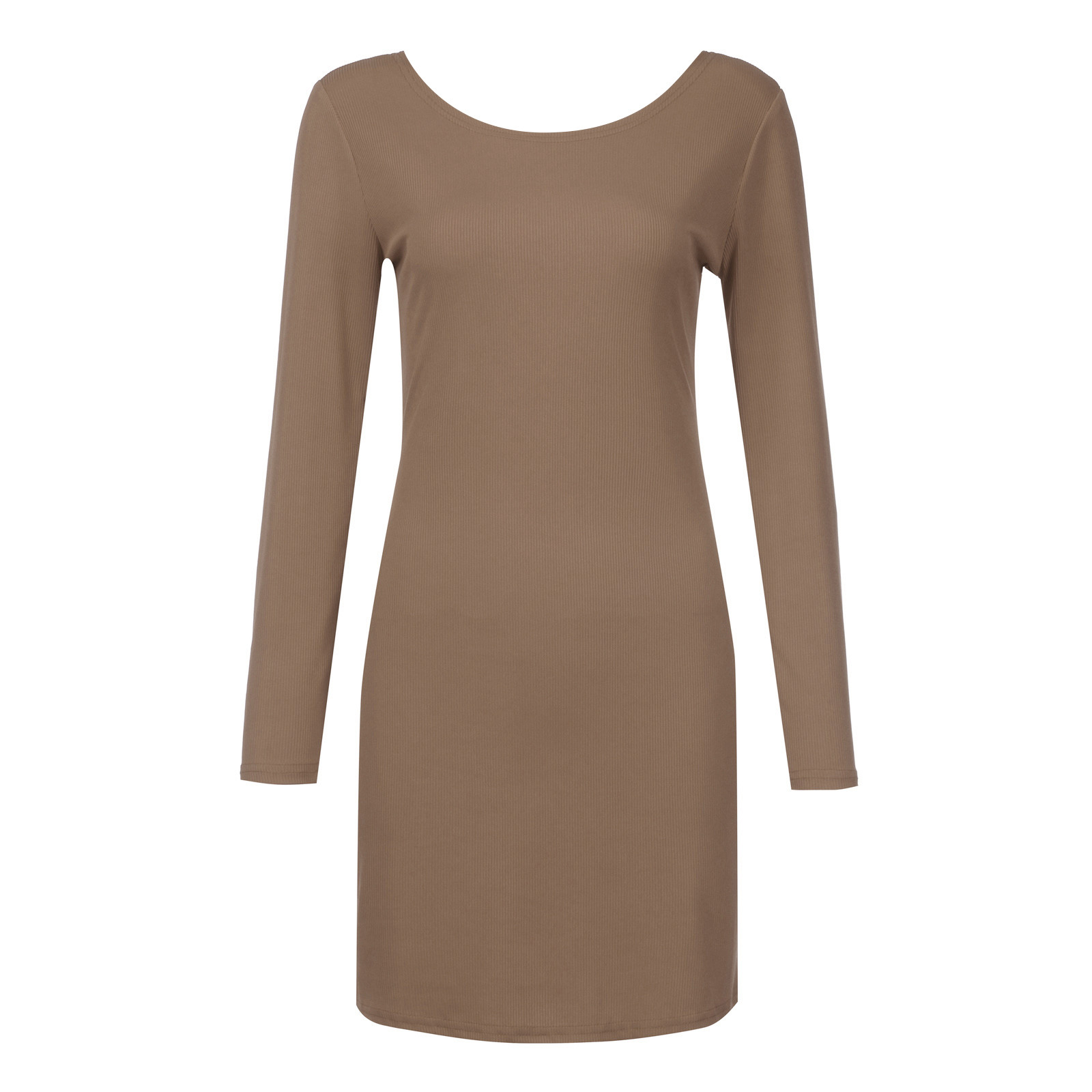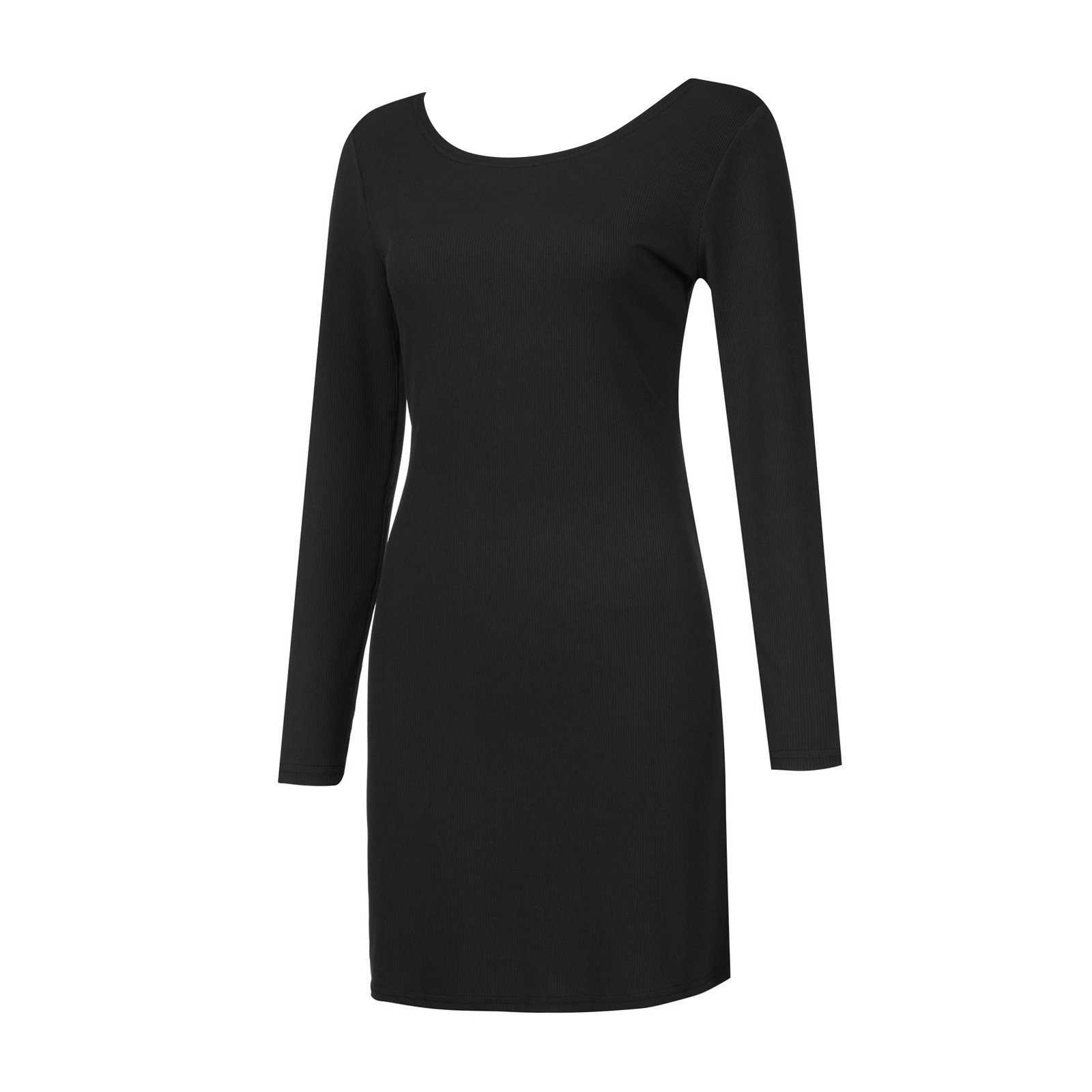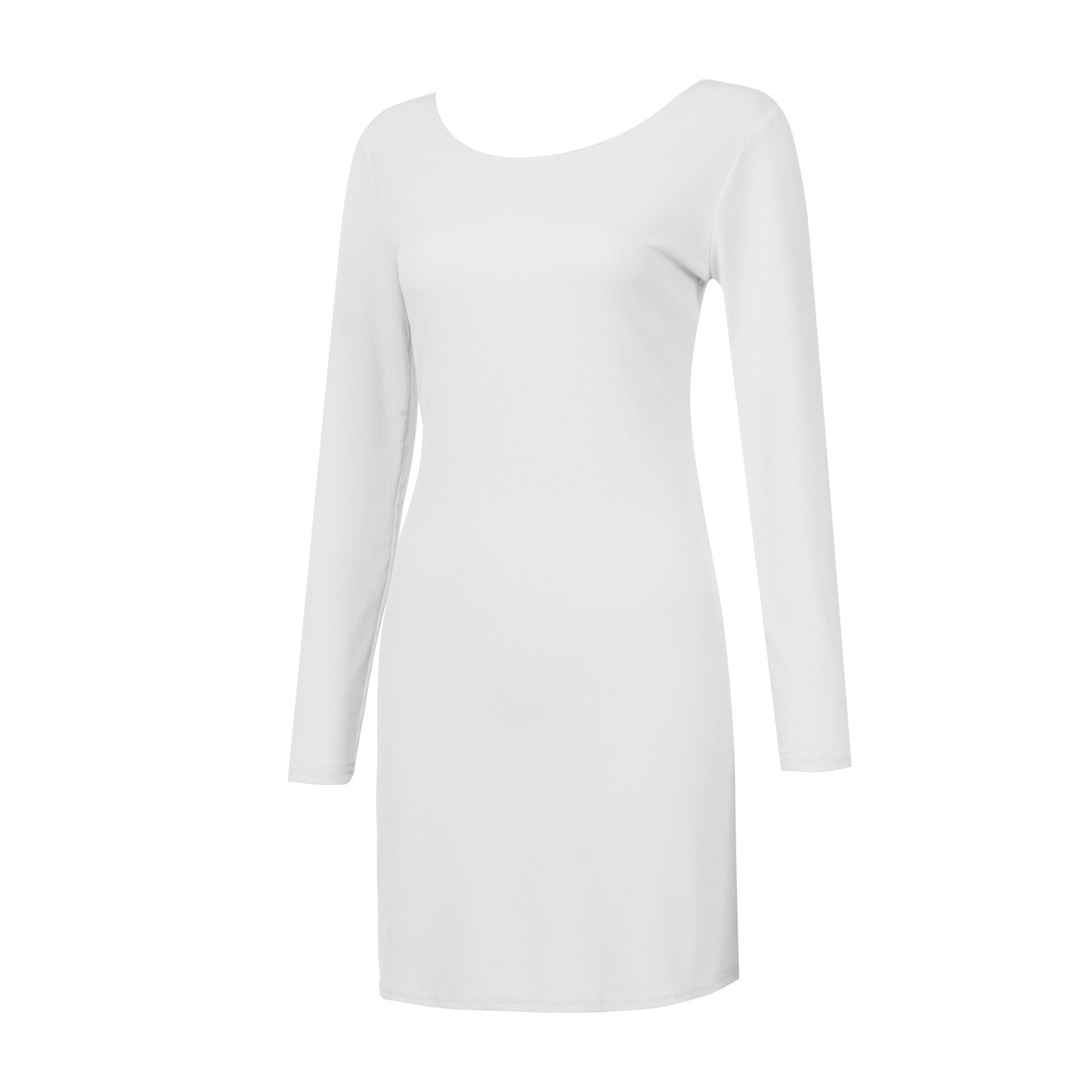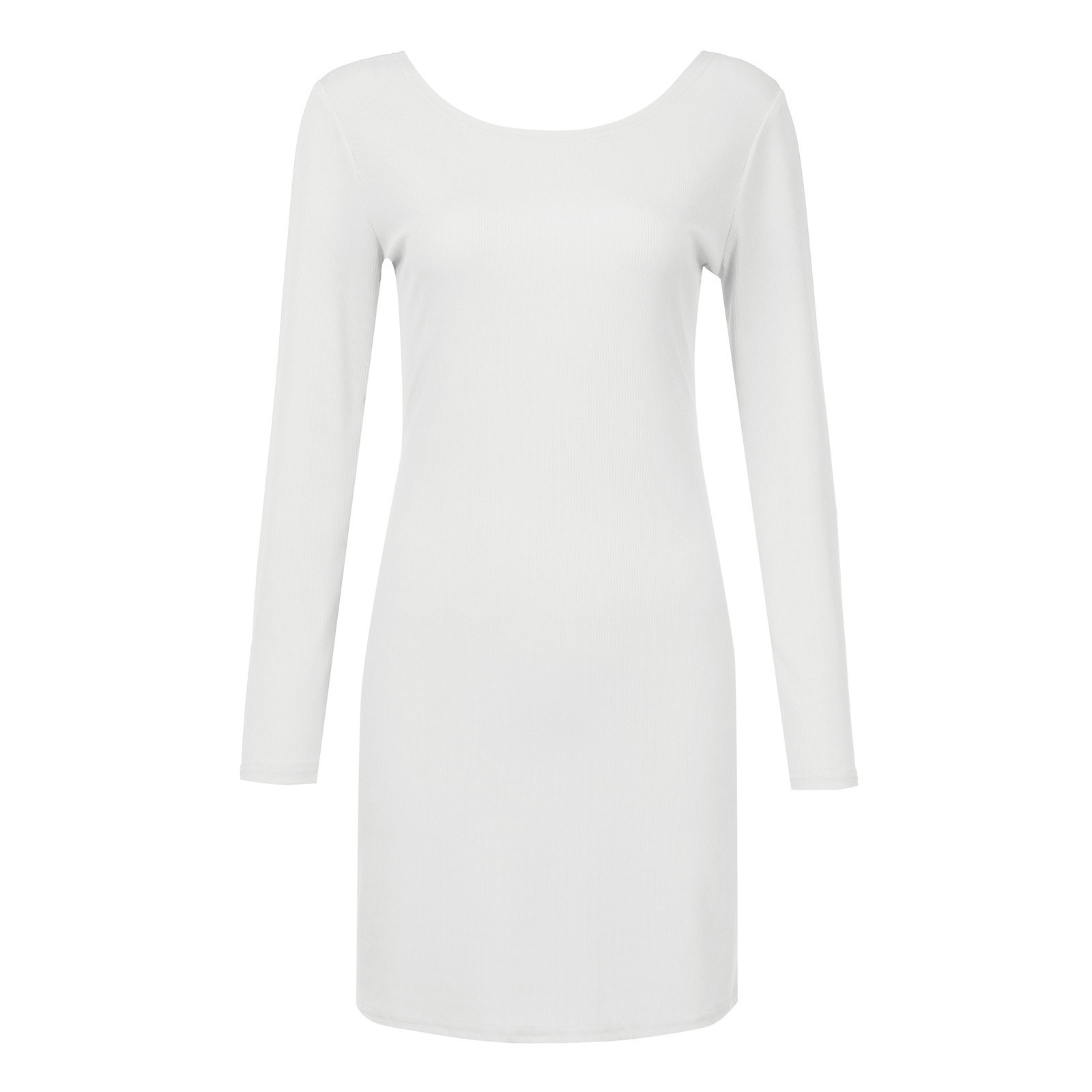 Женское модное повседневное одноцветное платье с длинными рукавами и круглым вырезом