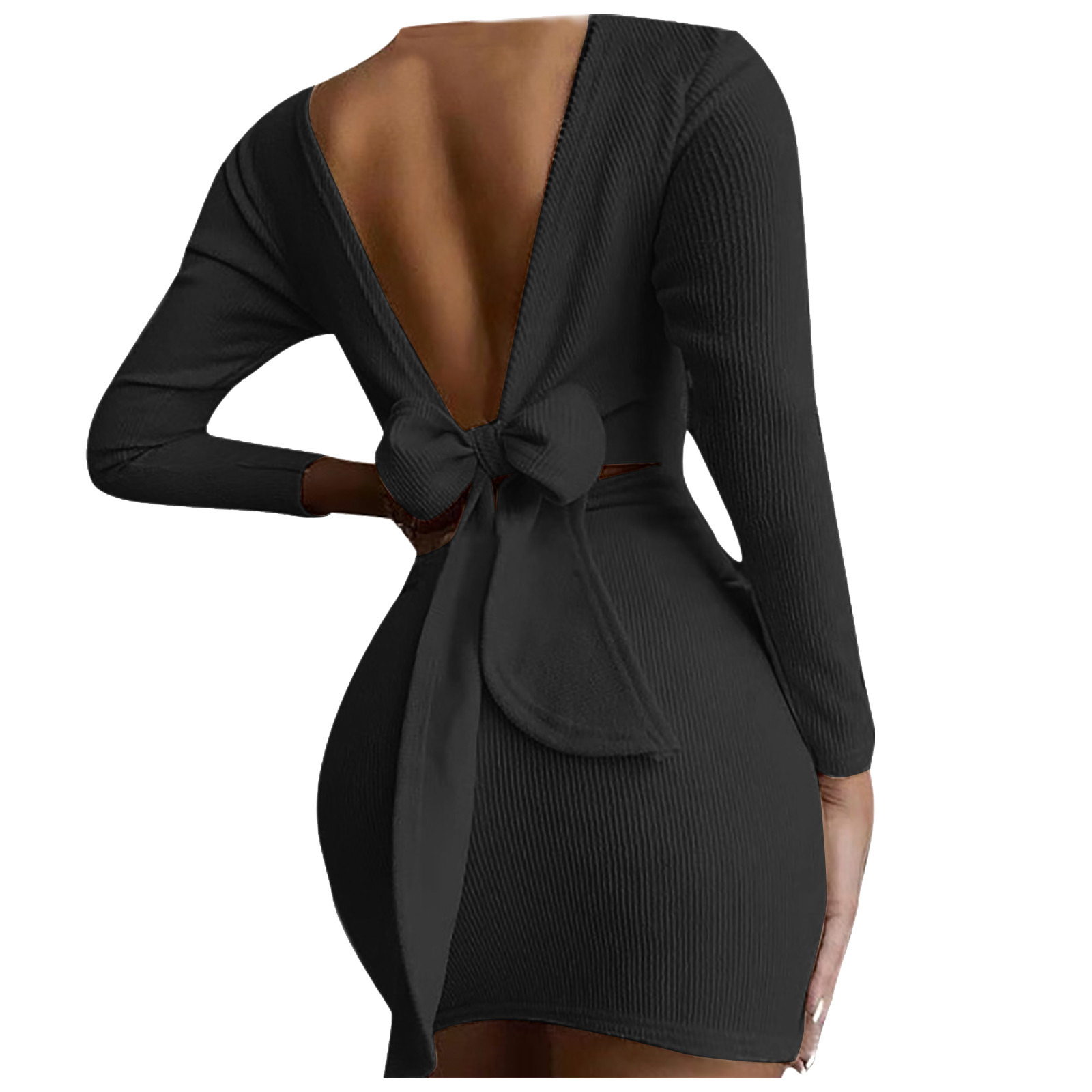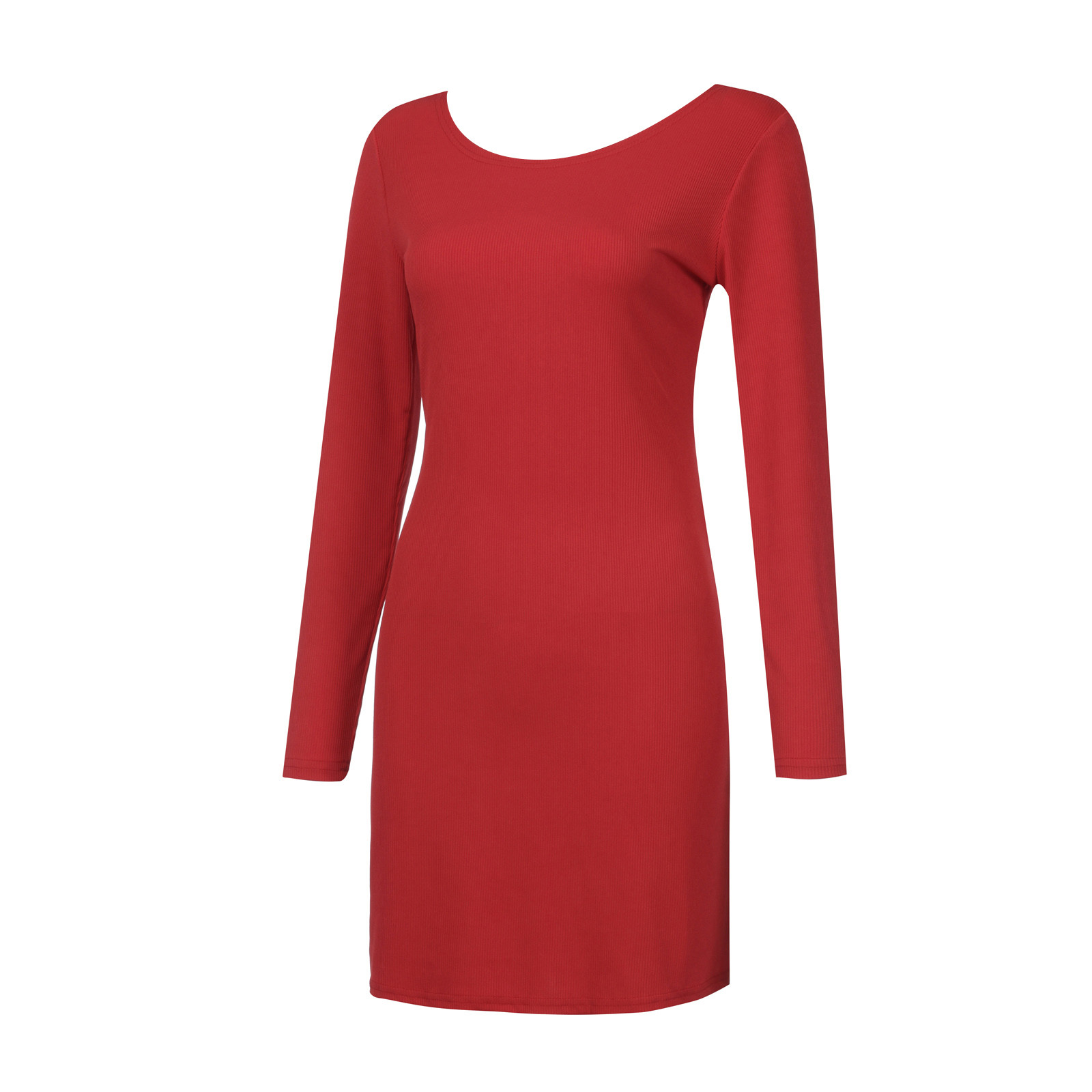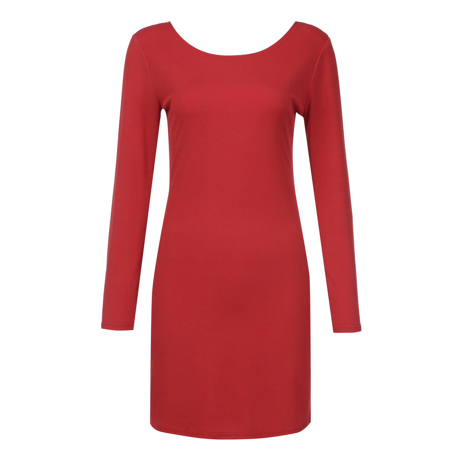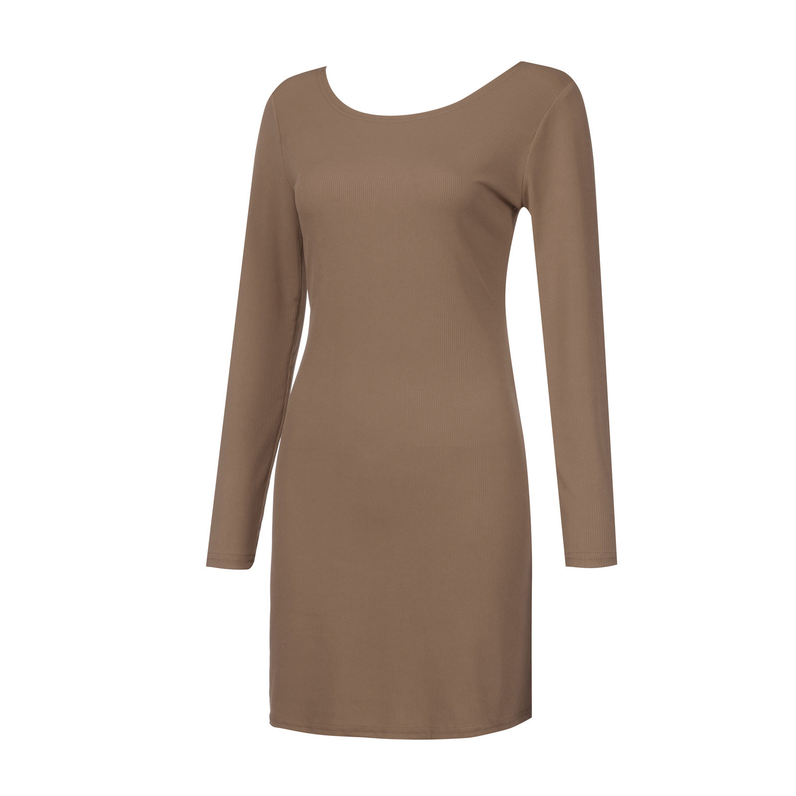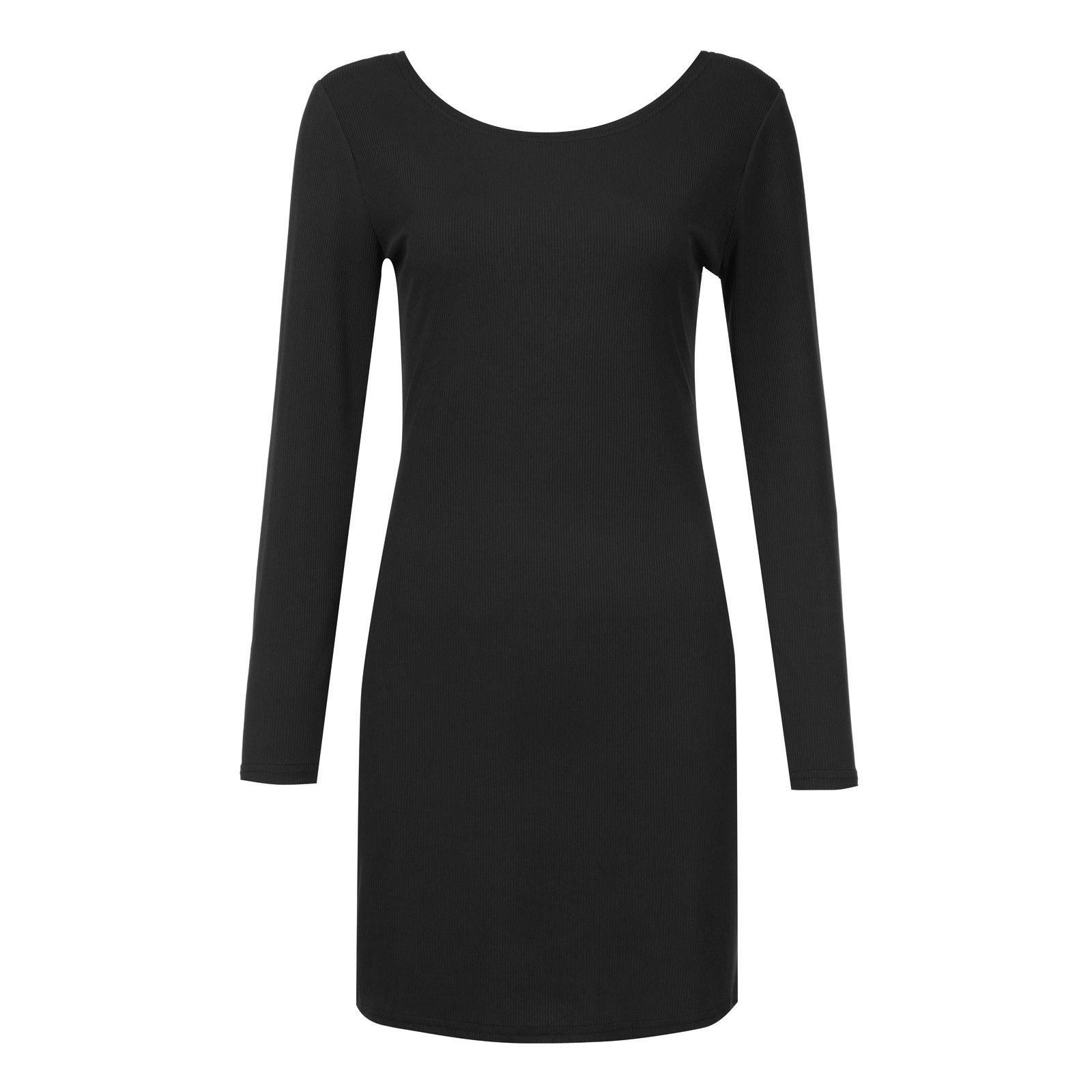 Женское модное повседневное одноцветное платье с длинными рукавами и круглым вырезом