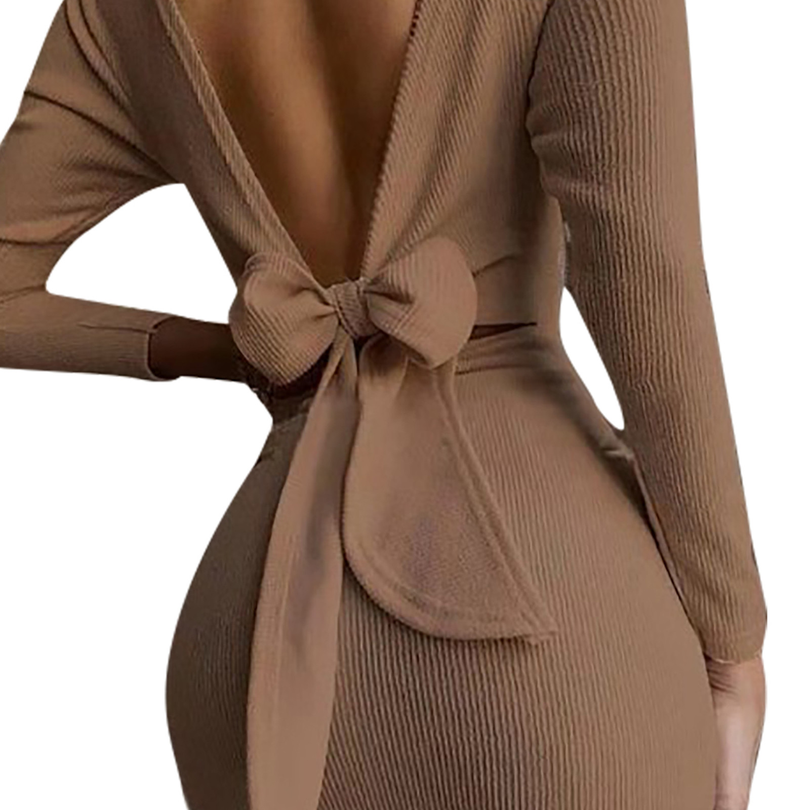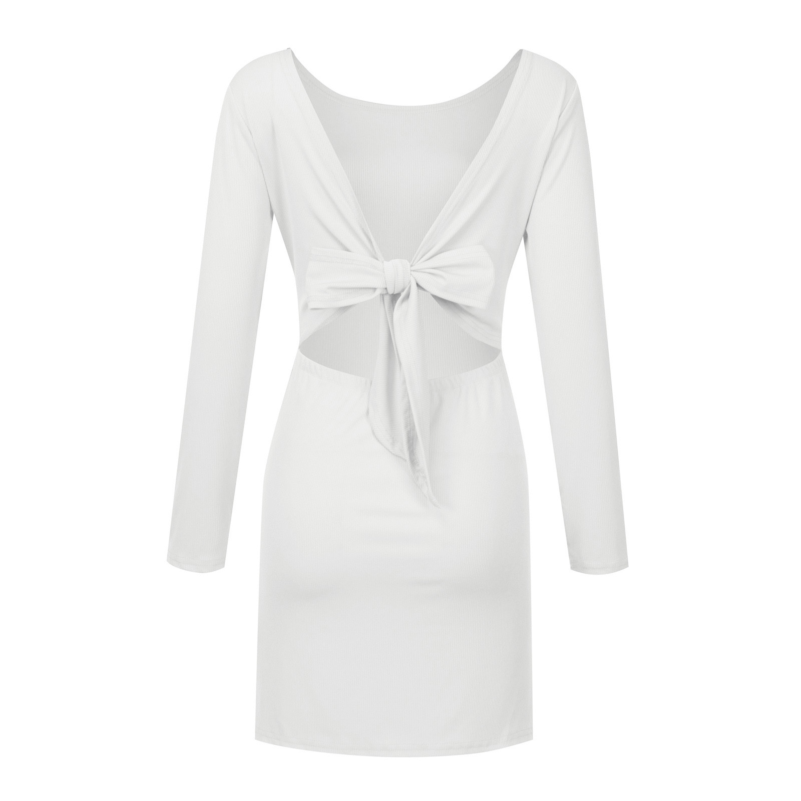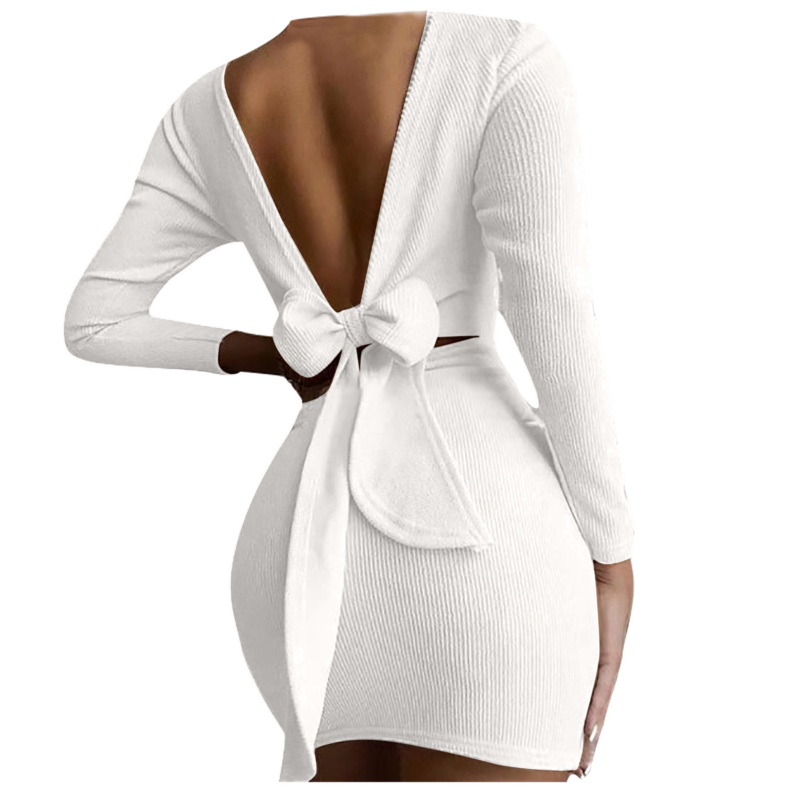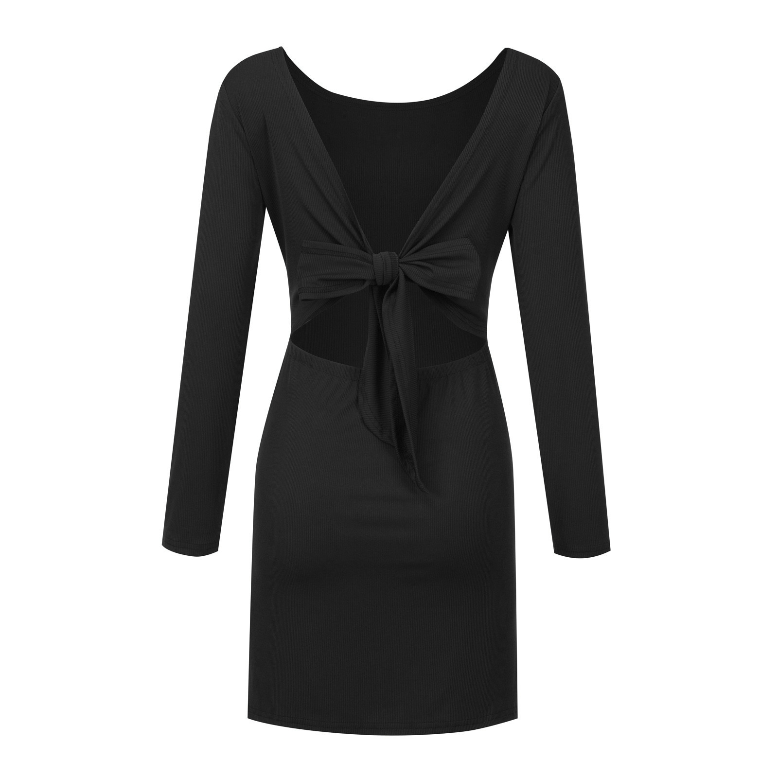 Женское модное повседневное одноцветное платье с длинными рукавами и круглым вырезом