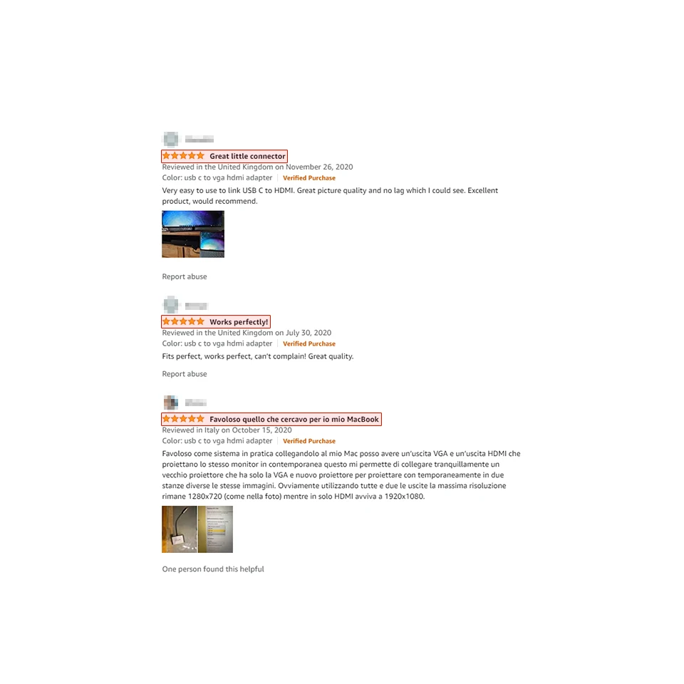Некоторые порты USB C имеют только функцию зарядки или передачи данных, функция видеовыхода отсутствует. Перед покупкой убедитесь, что порт USB C имеет функцию видеовыхода (например, он не может работать для One Plus, ZTE axon 7 и Nintendo Switch).