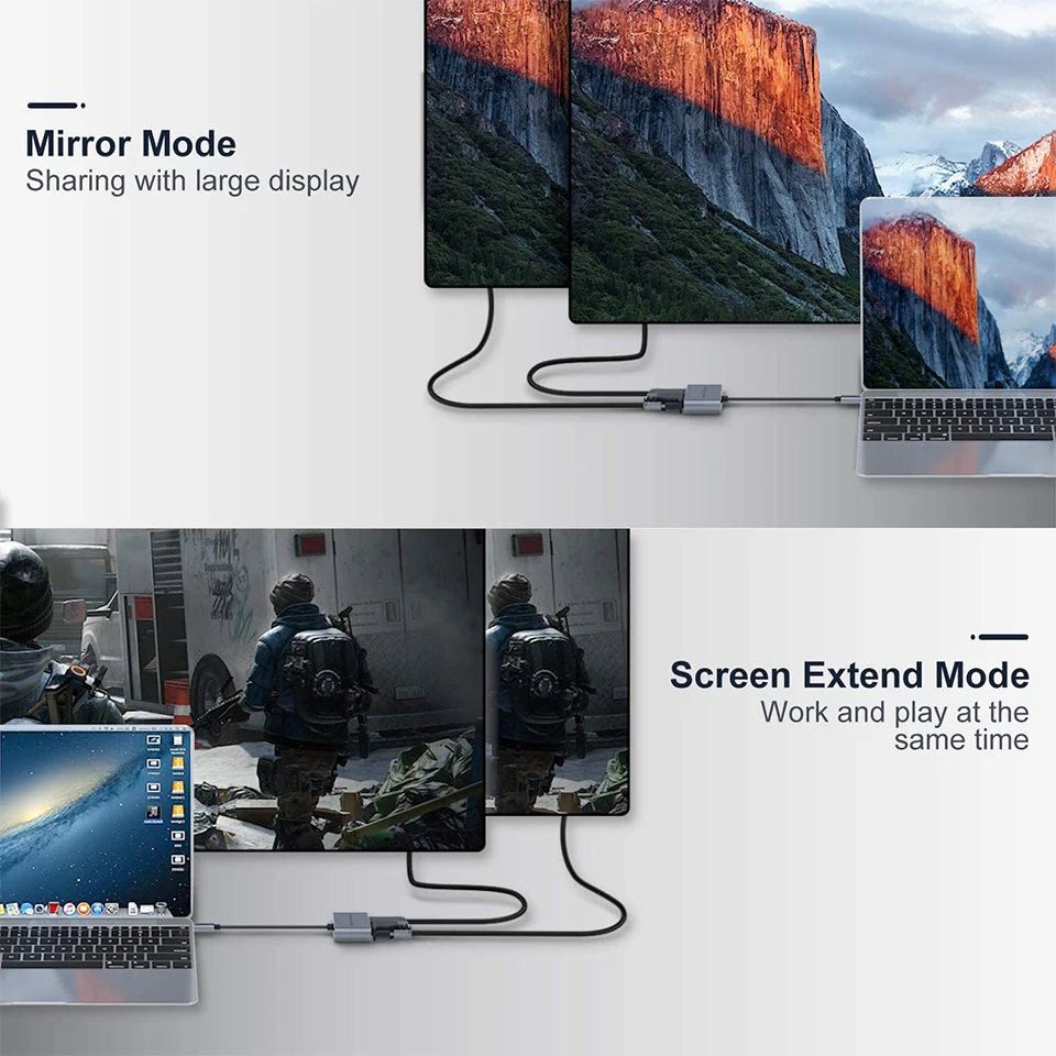 Упрощает путешествие с помощью этого USB-C к HDMI VGA многопортовому адаптеру