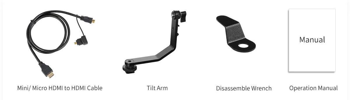 1 × Кабель Mini/ Micro HDMI-HDMI 1 × рычаг наклона 1 × разборный ключ 1 × руководство пользователя