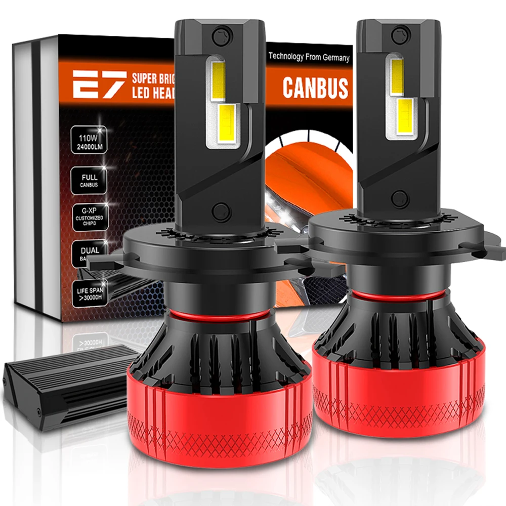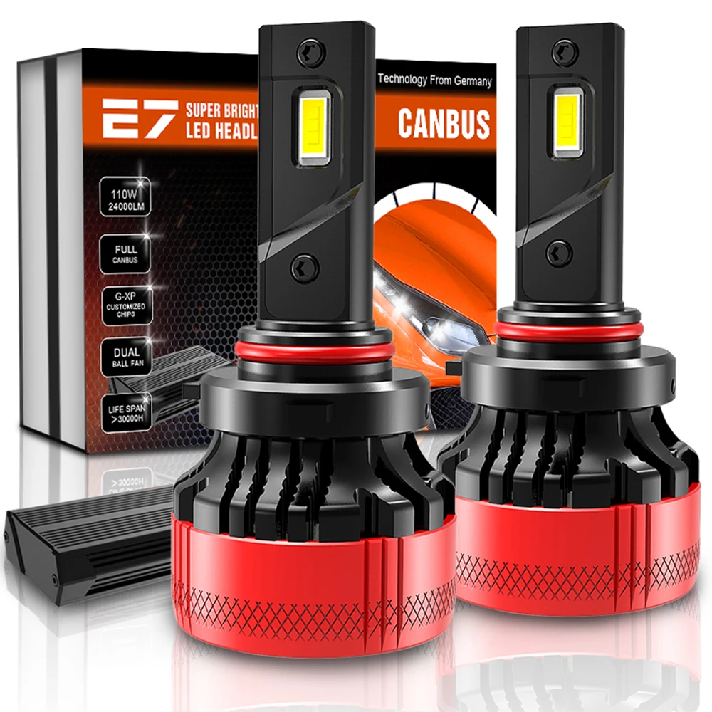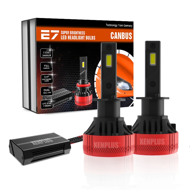 XENPLUS светодиодный лампы для фар E7 супер яркий H1 H4 H7 H11 H13 9004 9005 9006 9007 9012 HB3 HB4 110W 24000LM 6500K 2 шт