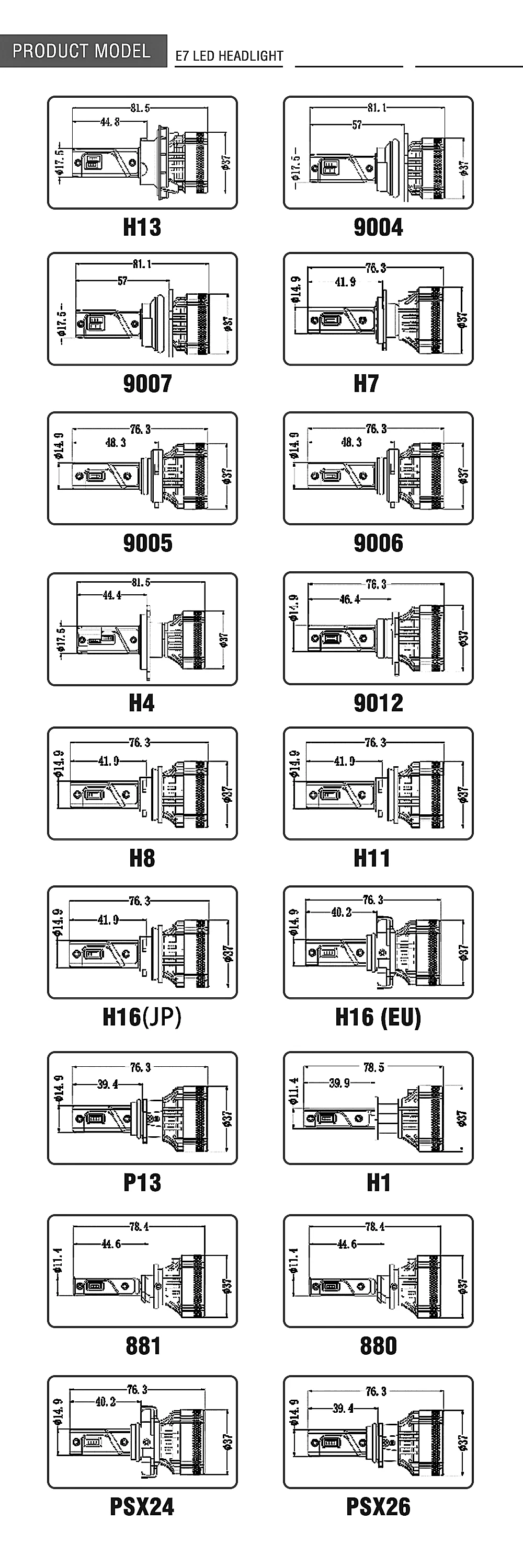 Модель: E7 светодиодный лампы для фар