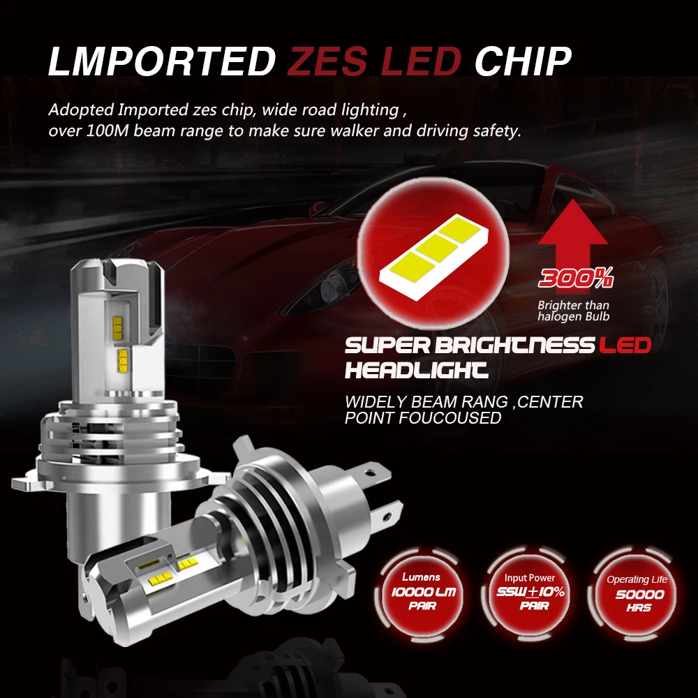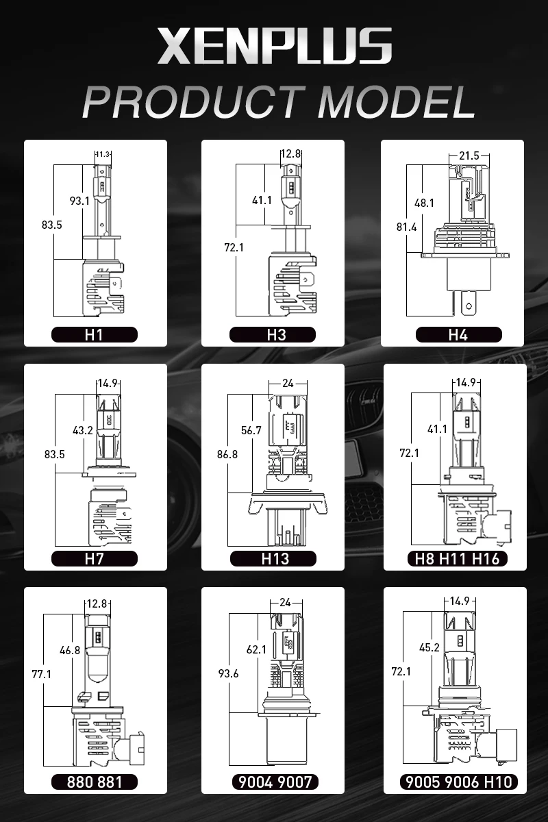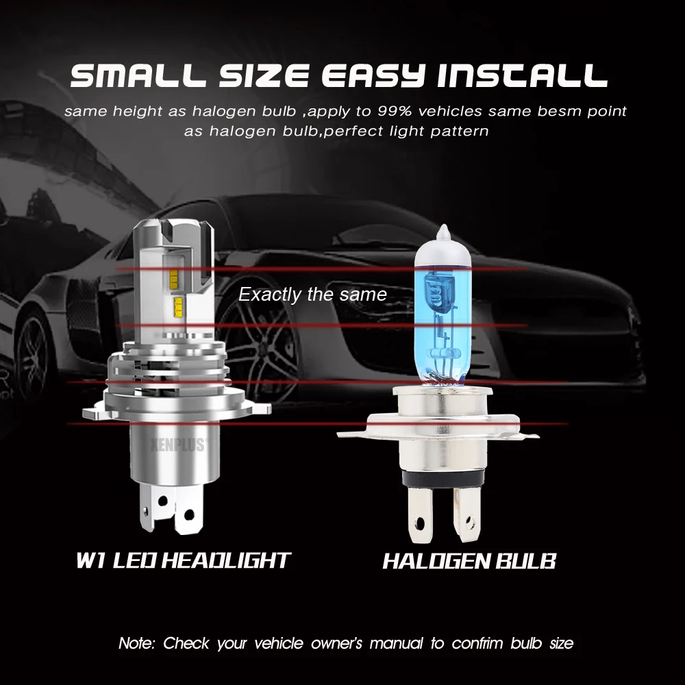 XENPLUS LED Headlight Bulbs W1 Super Bright H1 H3 H4 H7 H11 H13 9004 9005 9006 9007 9012 HB3 HB4 55W 13000LM 6500K 2PCS