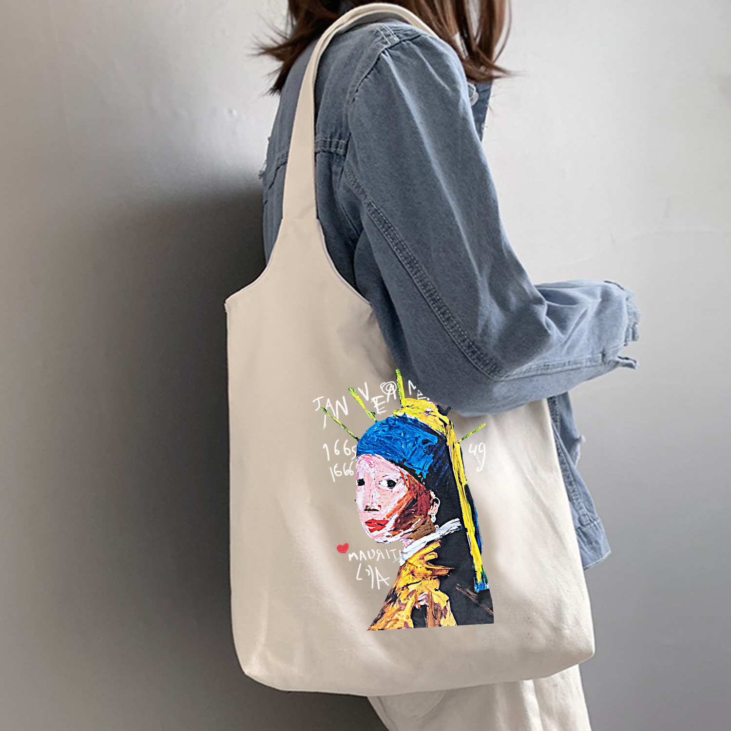 Новая женская Холщовая Сумка Харадзюку, вместительная, с художественным принтом, веселая, повседневная, модная, для колледжа, винтажная, для покупок, сумки на плечо для женщин, эко