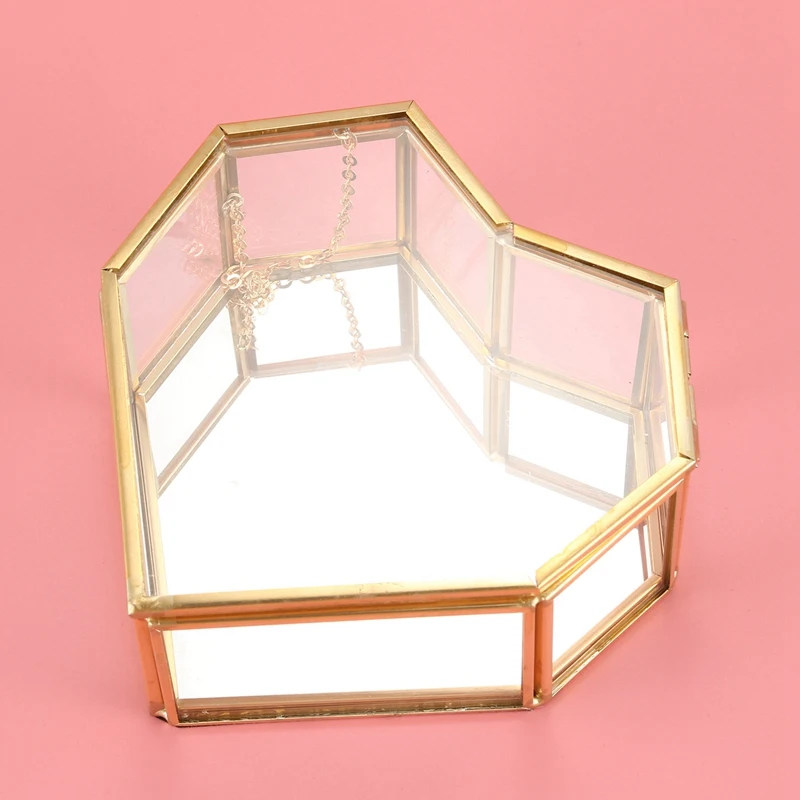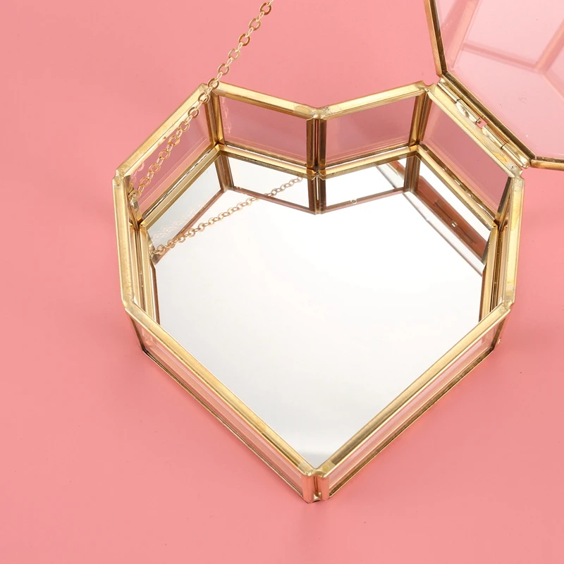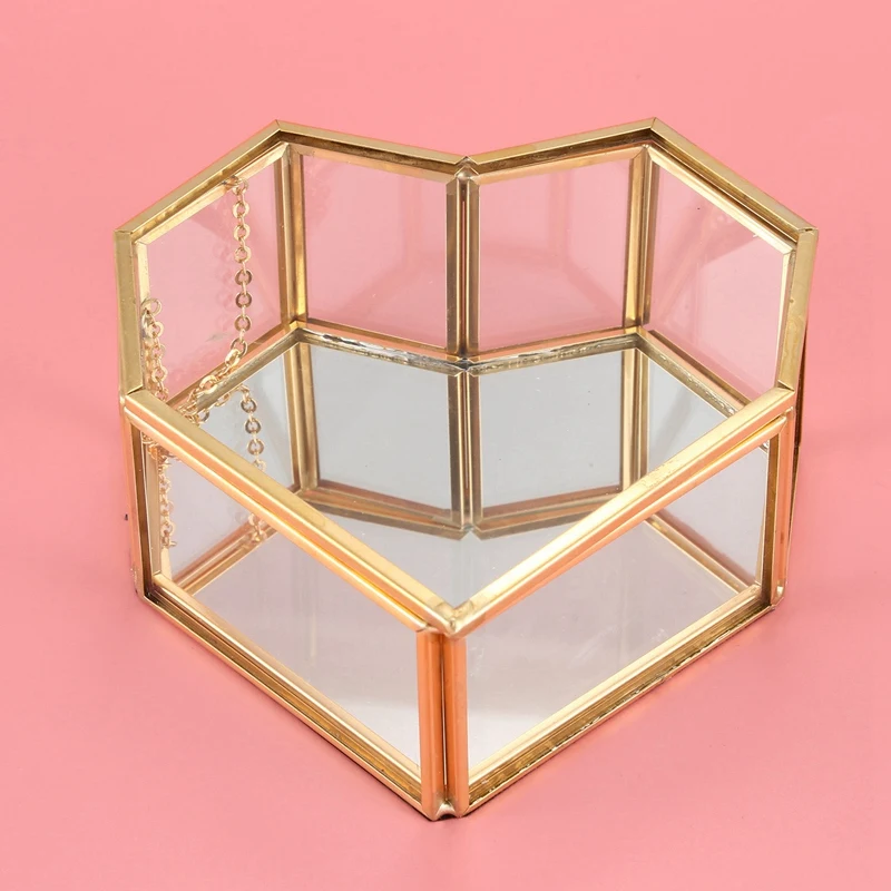 Стеклянная шкатулка с откидной крышкой в форме сердца геометрической формы, стеклянная шкатулка для колец, изысканная уникальная шкатулка Свадебная шкатулка для украшений для свадебного украшения