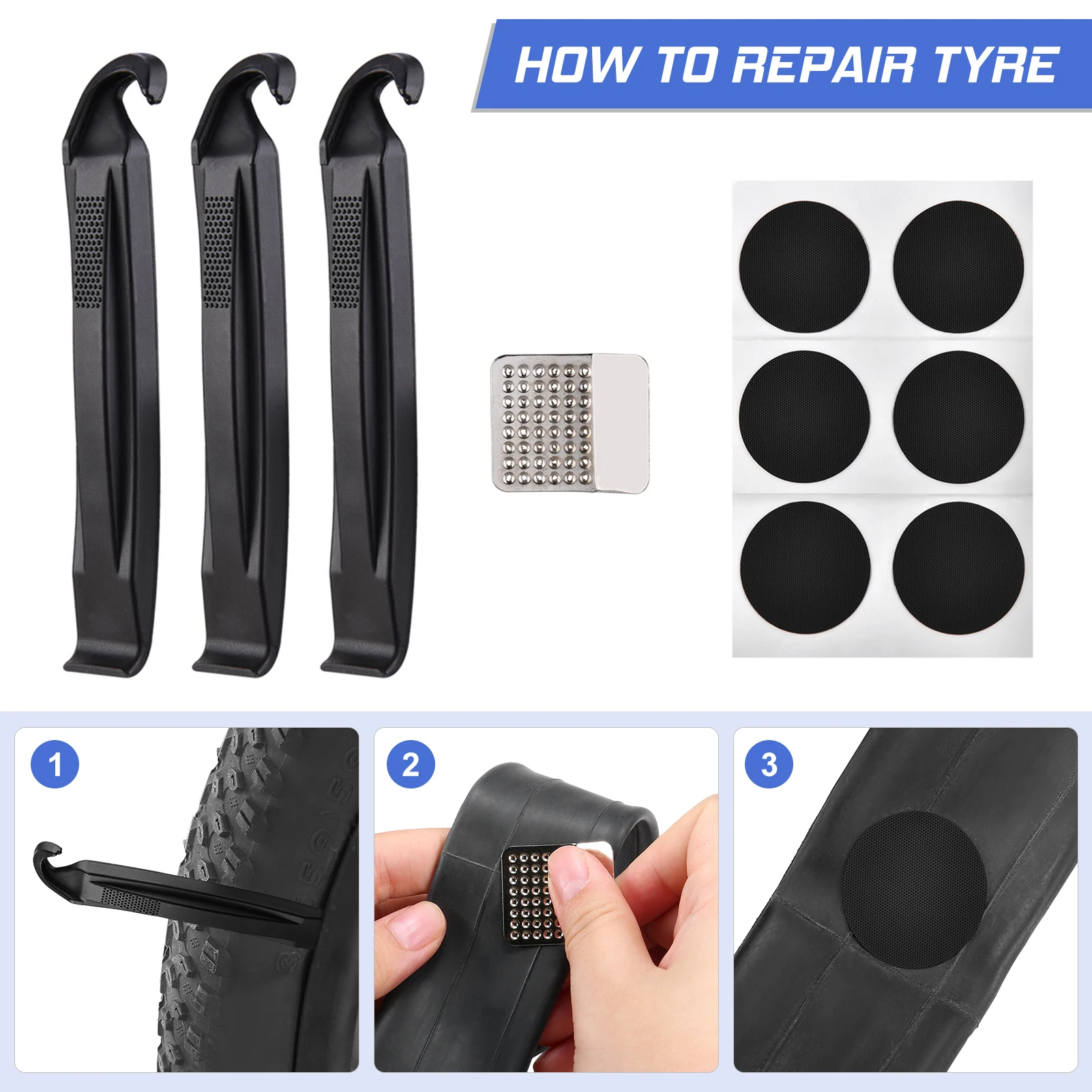 Набор инструментов для ремонта велосипеда изготовлен из высококачественного материала, прочный, прочный, практичный и полный для безопасной езды на велосипеде.