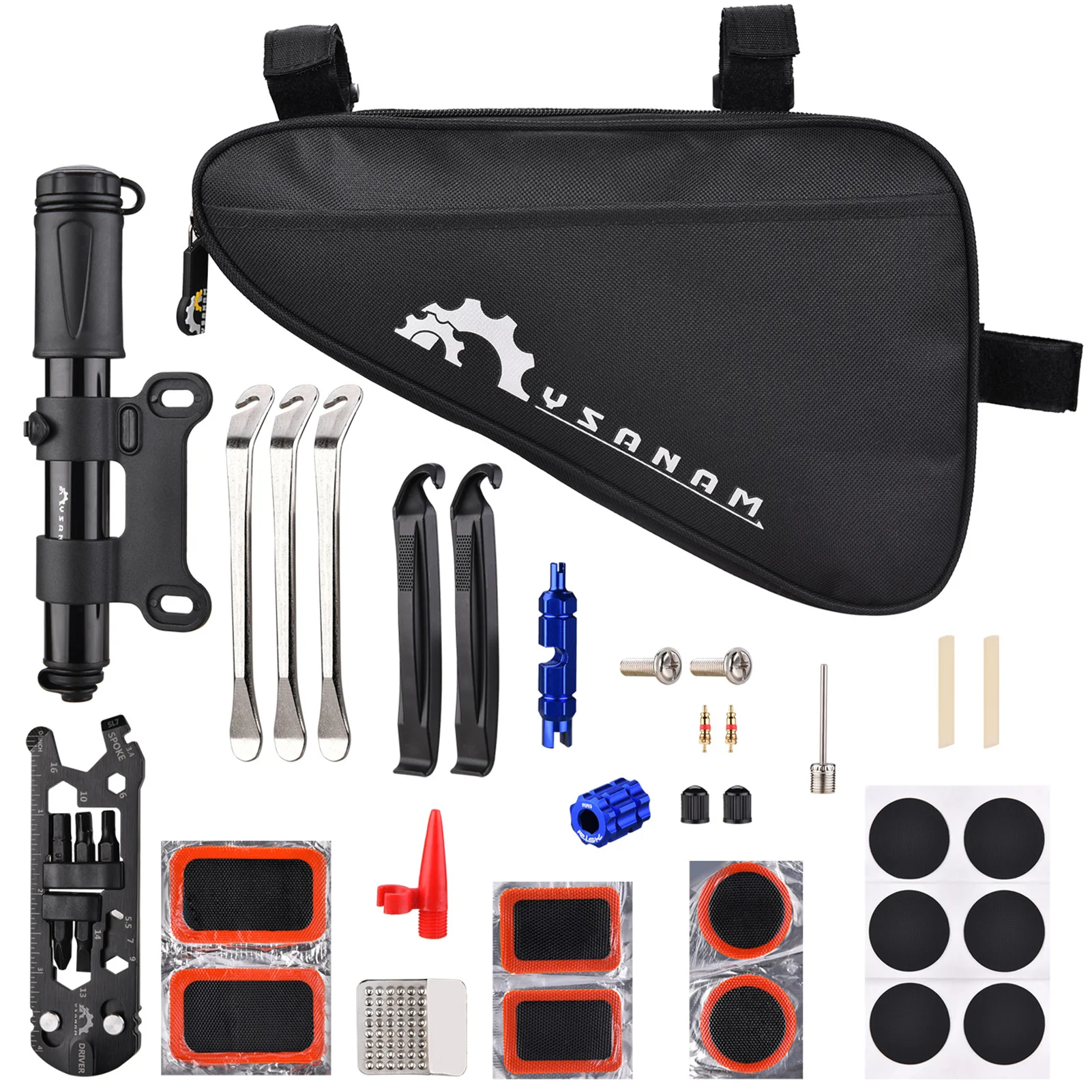 Есть много чрезвычайных ситуаций на открытом велосипеде, этот набор инструментов содержит воздушный насос и практичные многофункциональные инструменты для ремонта помогут вам в хрустящее время.