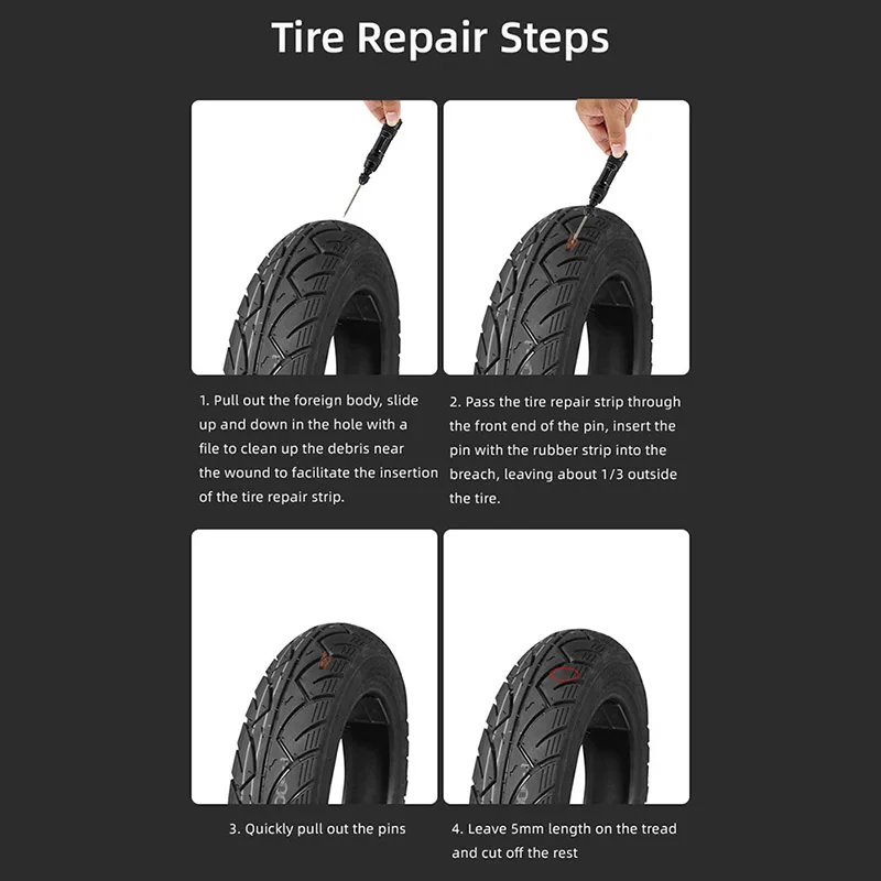 Цилиндрический отсек для хранения легко носить с собой. Инструмент для ремонта шин из алюминиевого сплава имеет три буровых штифта и пять полосок. Вы можете положить его в сумку, что очень удобно.