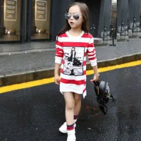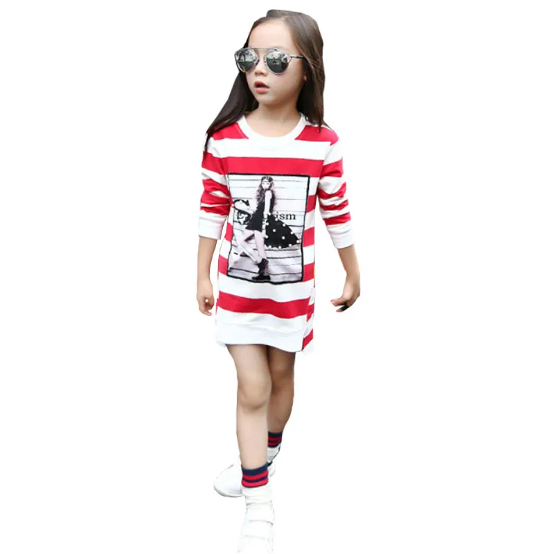 От 3 до 10 лет весенне-осеннее платье для девочек свитер в полоску с длинными рукавами и рисунком длинная футболка Качественная детская одежда