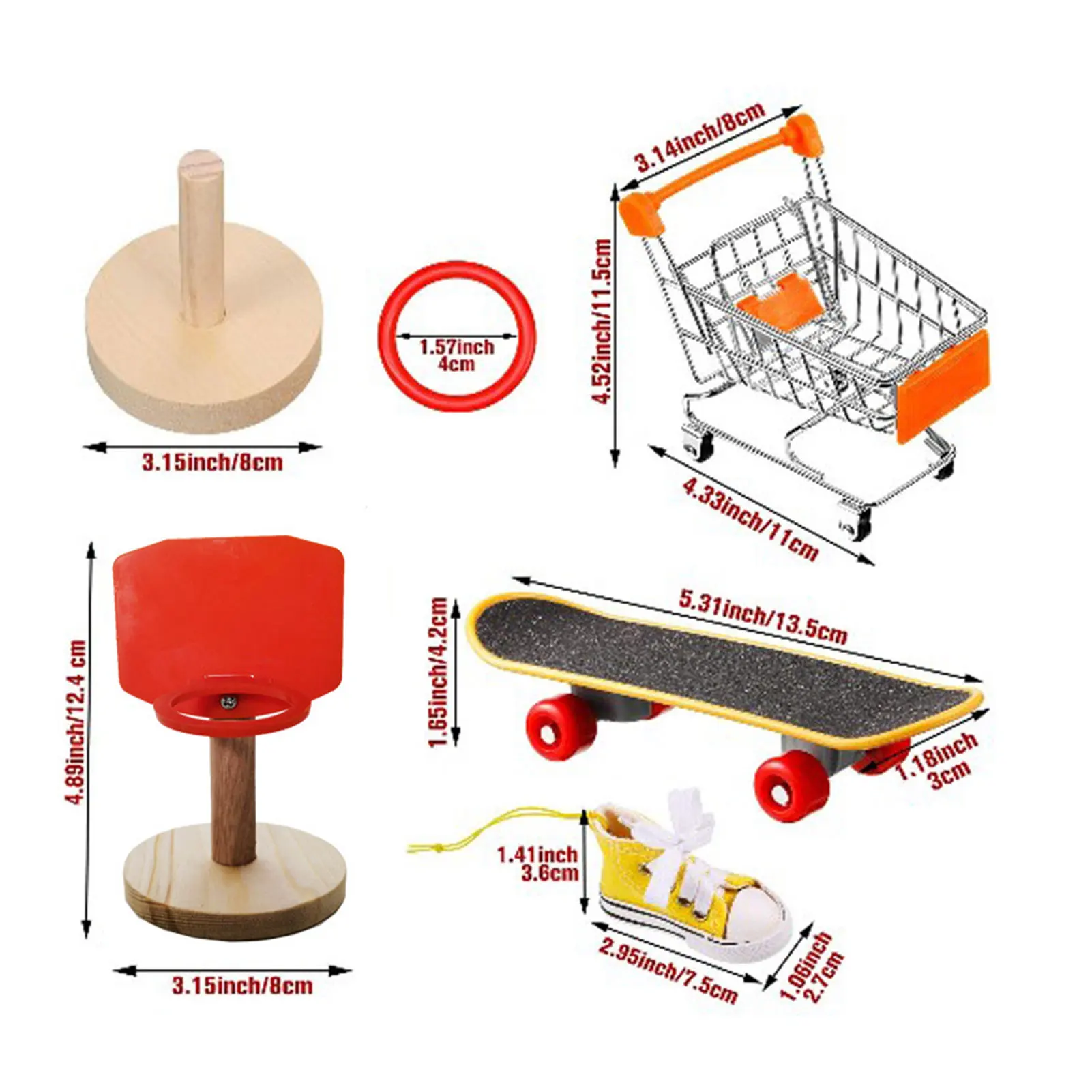 4. Информация о размере: корзина для попугая составляет около 4,33x3,14x4,52 дюйма/11x8x11,5 см; Баскетбольная игрушка составляет около 4,89 дюймов/12,4 см в высоту, его основание составляет около 3,15 дюймов/8 см в диаметре; Штабелируемая игрушка составляет около 2,95 дюймов/7,5 см в высоту, Его кольцо около 1,57 дюймов/4 см в диаметре, основание около 3,15 дюймов/8 см; скейтборд составляет около 5,31x1,65x1,18 дюйма/13,5x4,2x3 см (Д x Ш x В).
