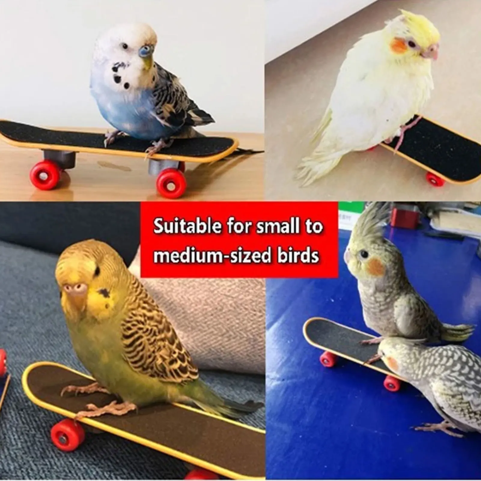 3. Надежный Материал: тренировочные кольца для птиц изготовлены из акрила и дерева, баскетбольная Штабелируемая Игрушка изготовлена из дерева и пластика, Корзина изготовлена из сплава и пластика, игрушка для скейтборда изготовлен из пластика с матовым покрытием.