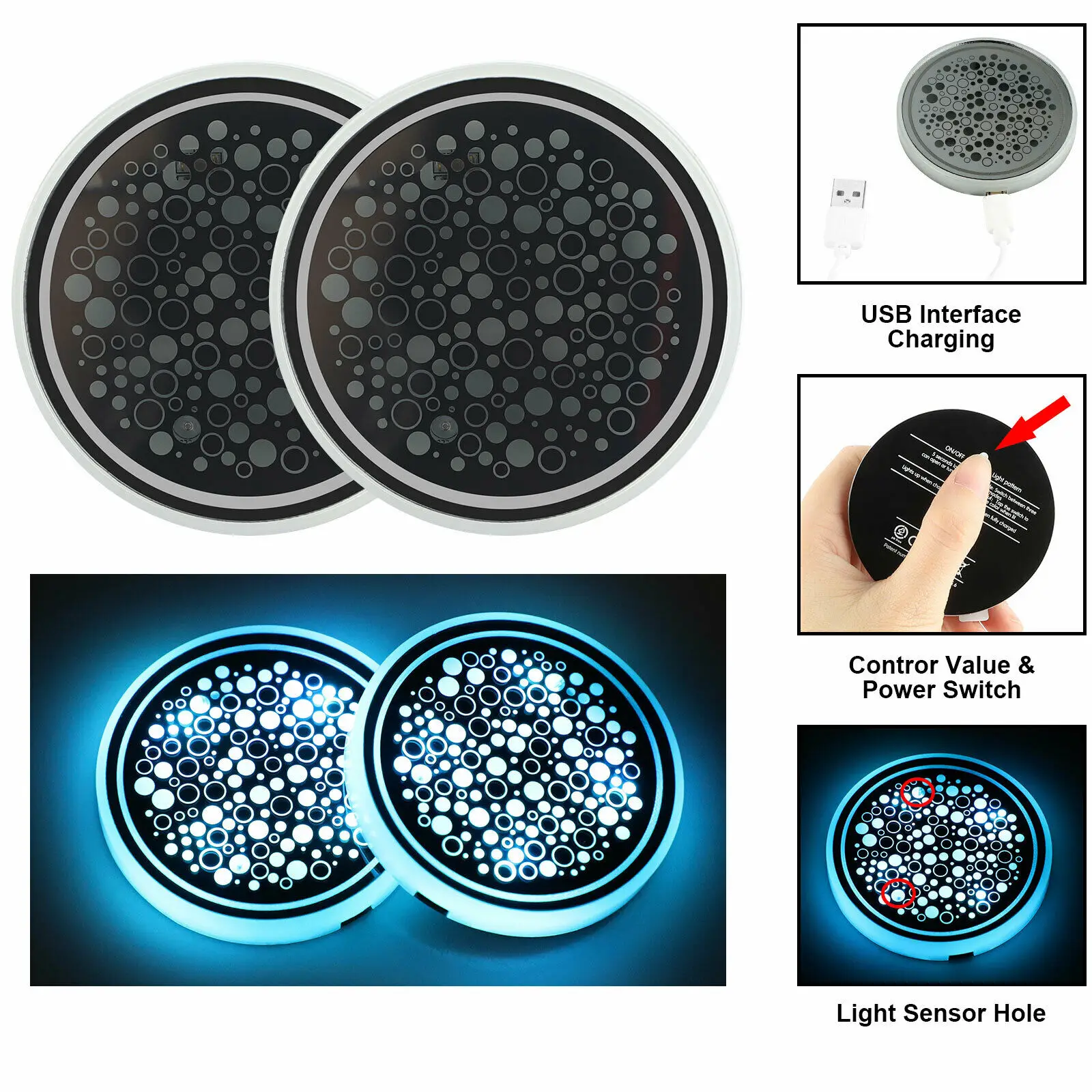 Универсальный диаметр 2,67 дюйма (68 мм) Подставки Под Автомобильные подсветки подходят для большинства моделей автомобилей. Чтобы включить или выключить свет, измените цвет и режим нажмите и удерживайте кнопку на задней стороне светодиодного подстаканника.