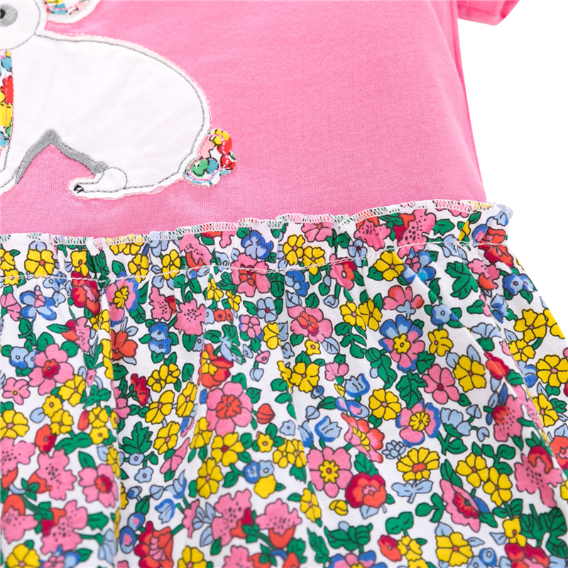 Girl's Dress Cartoon Bunny Flower Print Short Sleeve Round Neck Dress