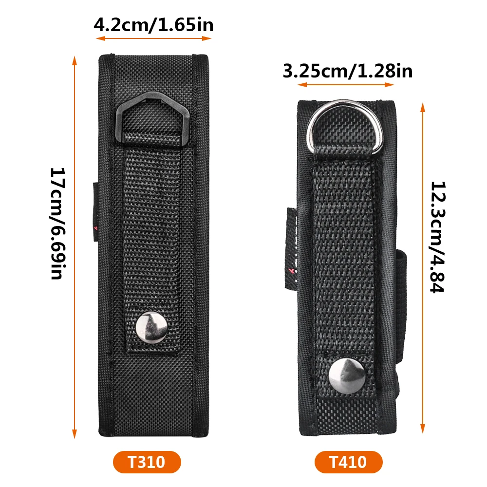 3. T410 подходит для фонарика длиной от 93 мм до 113 мм и диаметром около 20 мм. Ширина ремня: 5 см (макс.). Размер мешка: 123*32 мм.