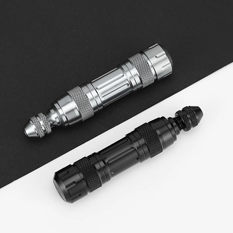 Цилиндрический отсек для хранения легко носить с собой. Инструмент для ремонта шин из алюминиевого сплава имеет три буровых штифта и пять полосок. Вы можете положить его в сумку, что очень удобно.