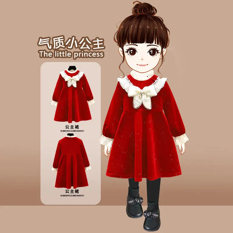 От 2 до 12 лет детские красные платья с кружевным воротником и бантом для девочек осенняя одежда для маленьких девочек праздничное платье 8 12