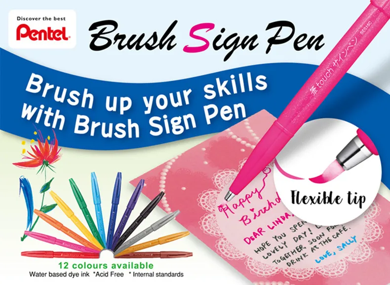 PENTEL сенсорная кисть ручки для подписей SES15C тонкий наконечник каллиграфическая ручка для письма набросок рисунок японские Канцтовары