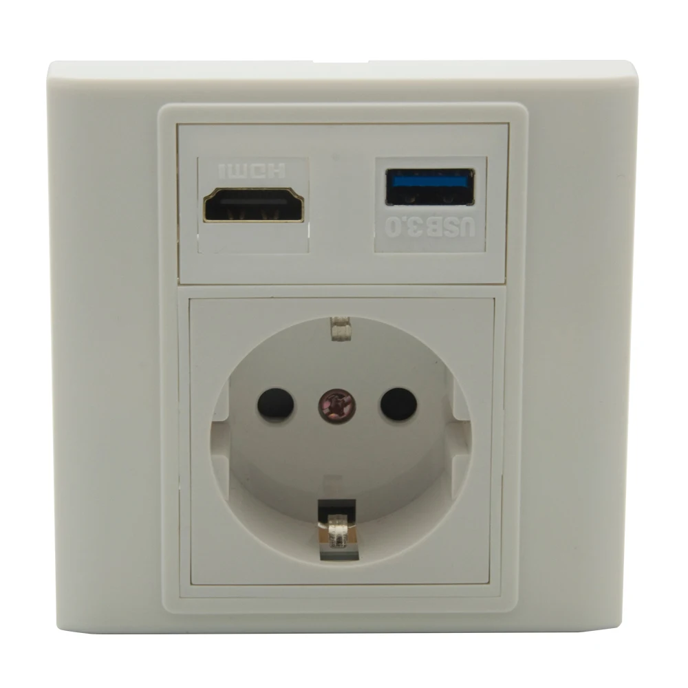 Д: 86 мм X Ш: 86 мм Интегрируйте 1 порт HDMI V2.0, 1 порт USB 3,0, 1 порт европейского стиля электрической розетки. Интегрируйте 2 стандартных отверстия для замочных камней и поддержку для замены любого разъема для ключей, если это необходимо. Поместится в макс. три различных мультимедийных разъема и может найти его в моем магазине и поддержку для настройки вашей собственной настенной пластины.
