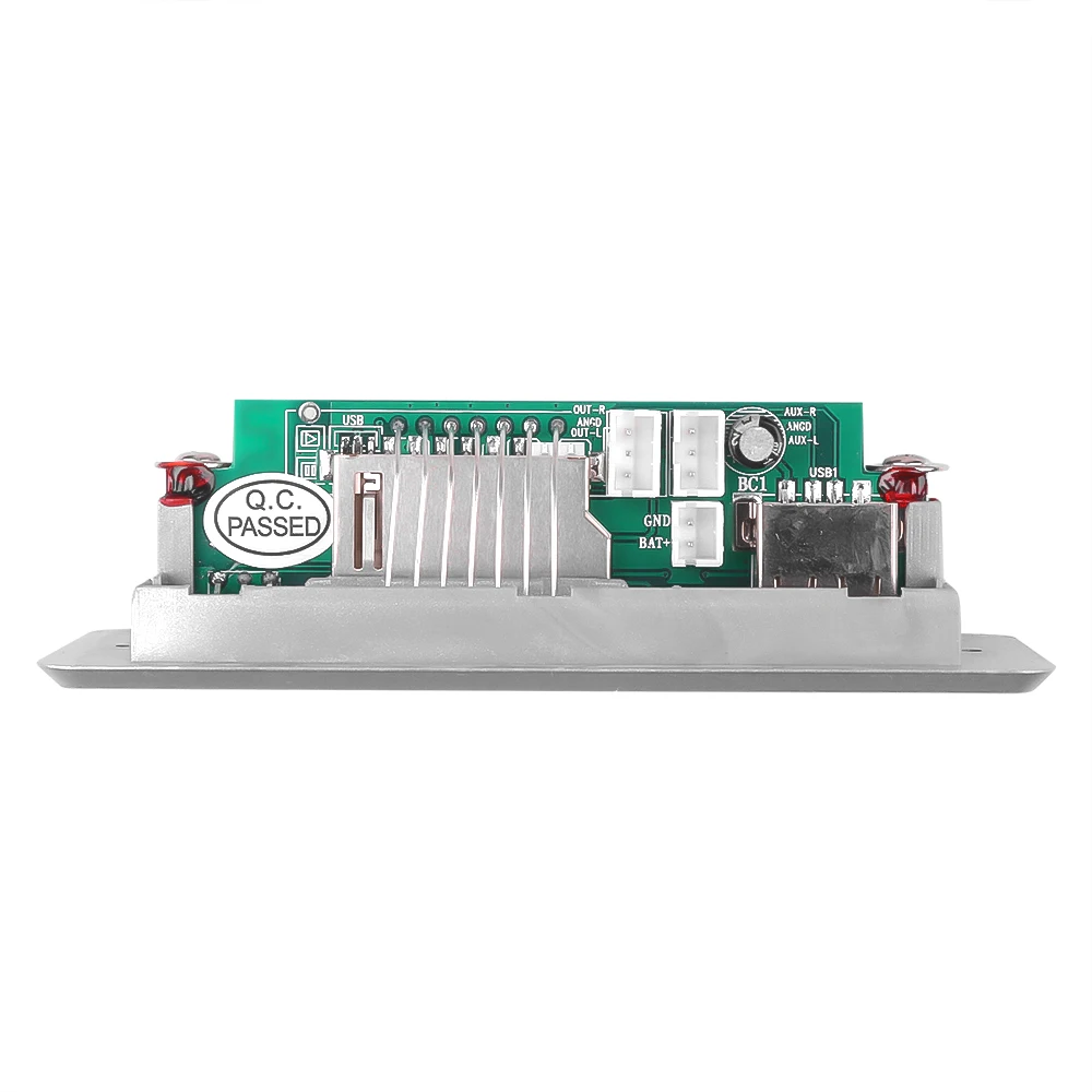 1. Инфракрасный приемный модуль;2. TF: подключение карты памяти TF (максимальная поддержка 32 Гб);3. USB: Подключение u-диска (максимальная поддержка 32 Гб);4. Светодиодный индикатор;5. VOL-: короткое нажатие, чтобы выбрать предыдущую песню; Длинное нажатие, чтобы уменьшить громкость;6. Воспроизведение/пауза: короткое нажатие-Переключение между паузой и воспроизведением; Короткое нажатие в fm-радио-режиме, чтобы автоматически закрыть станцию;7. VOL +: короткое нажатие, чтобы выбрать следующую песню; Длинное нажатие, чтобы увеличить громкость;8. Режим: USB / TF / FM / AUX / BLUETOOTH переключательВерсия Bluetooth: Bluetooth 5,0Формат музыки: MP3 / WMA / WAV / FLAC / APE формат без потерьРадио FM частота: 87,5-107,5 МГцПоддержка функции: поддержка MP3 / USB / TF / LINE IN / FM / BLUETOOTH/дистанционное управление/DC 5 В или 12 В (опционально)О конструкции: Размер панели: Длина 75*24 мм, есть винтовые отверстия с обеих сторон панели для фиксации положения, глубина панели 23 мм