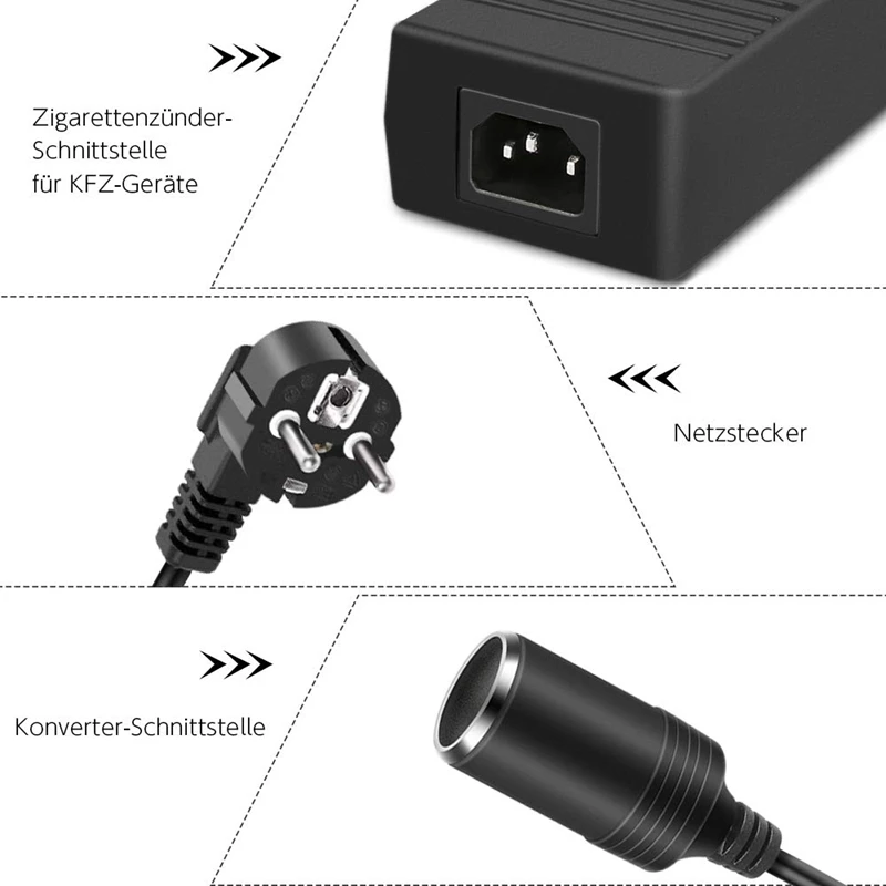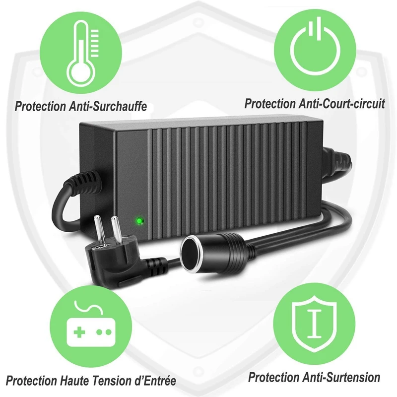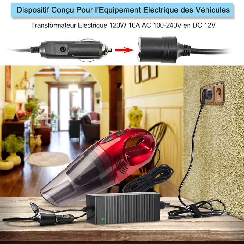 С безопасным преобразованием 100-240 в 50-60 Гц сетевой источник питания переменного тока в 12 В 10 А прямое напряжение с выходной мощностью 120 Вт, этот источник питания позволяет всем устройствам в автомобиле с автоматической розеткой работать дома с питанием. Вы можете использовать автомобильные электронные устройства не только в автомобиле, но и в доме, такие как воздушный компрессор, шинный насос, автомобильный пылесос, автомобильный диффузор, автомобильный холодильник и т. д.