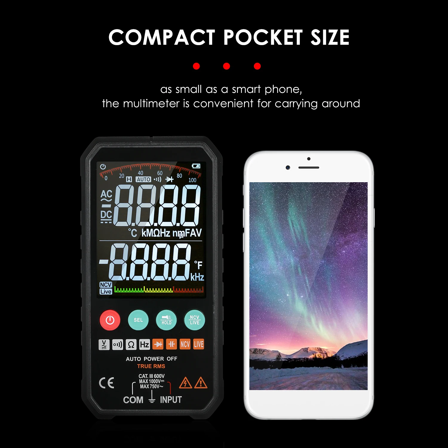 Компактный карманный размер: такой маленький, как смартфон и работает от 2 батареек типа ААА (не входят в комплект), мультиметр удобен для ношения с собой. Поставляется с чехол для хранения, на молнии для эффективной защиты мультиметра от повреждений.