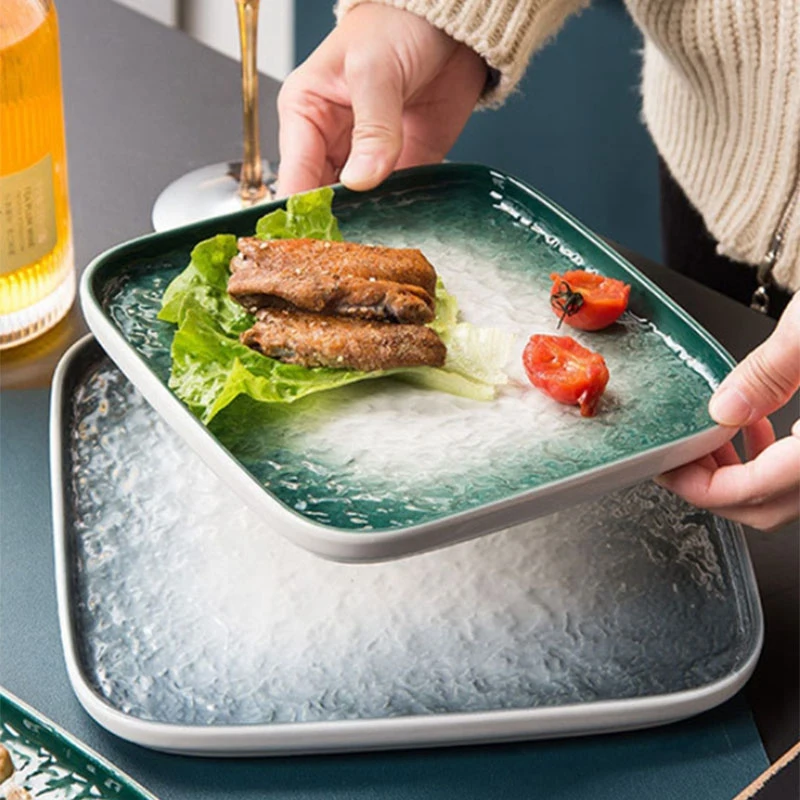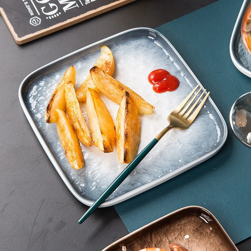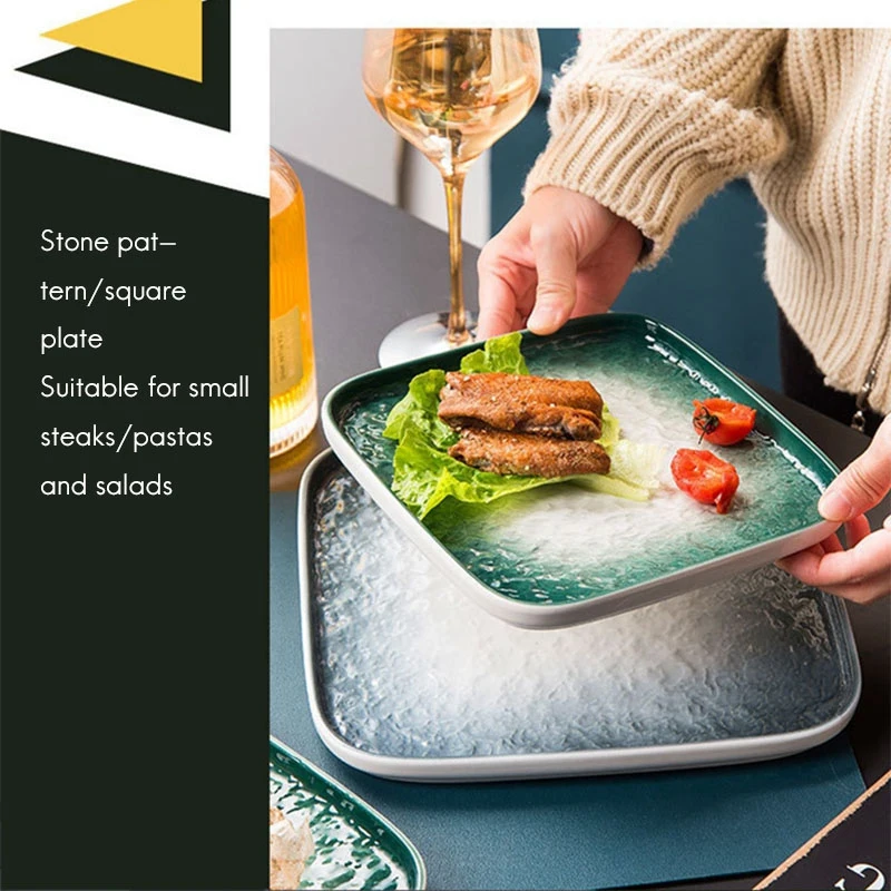 2 шт. фарфоровая квадратная десертная тарелка для салата с уникальным дизайном каменной текстуры, обеденная паста, Сервировочная тарелка для стейка