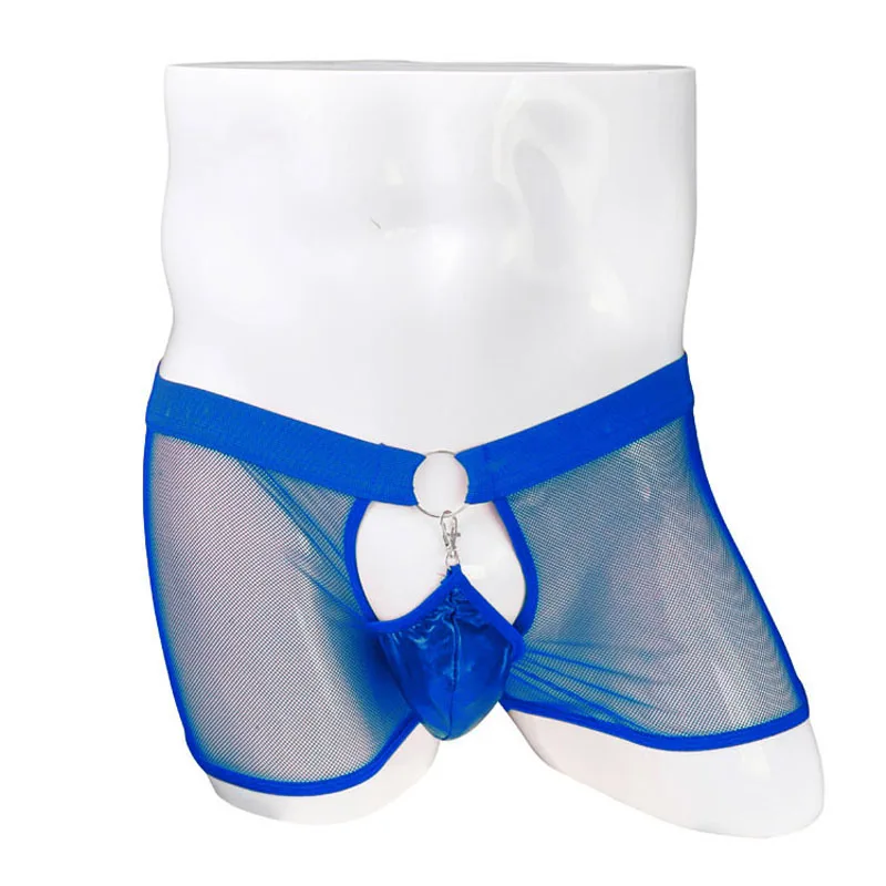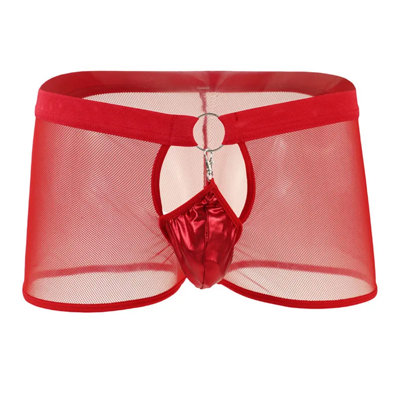Низкая талия сексуальное мужское нижнее белье марлевые боксеры с искусственной кожей мешок черный белый красный фиолетовый синий M L XL XXL ZJH1028