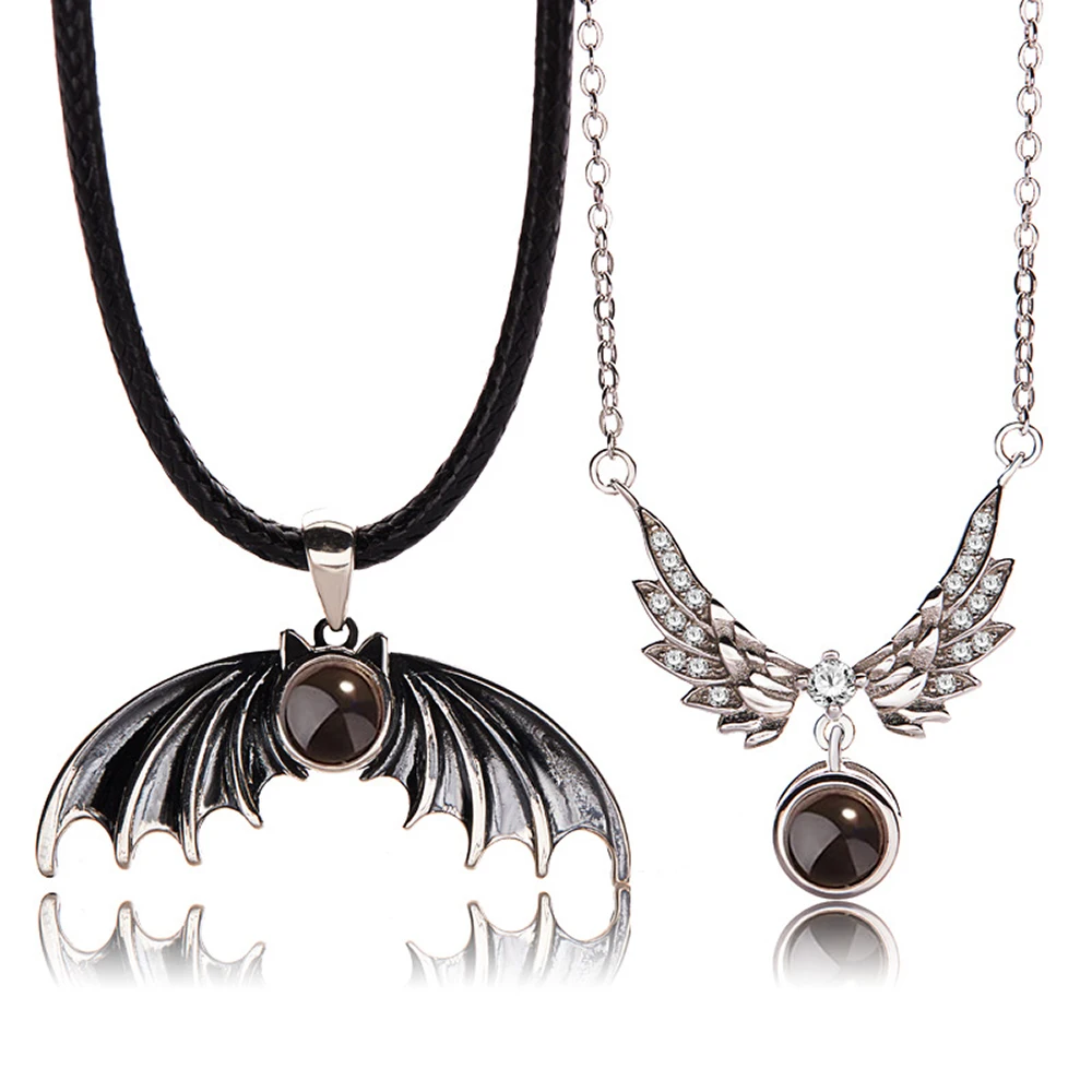 Информация о товаре: Материал: Серебро S925 Длина цепочки: 40 см + 4 см удлинительная цепочка Размер: около 23*17 мм Вес: 4,2 г Особенности: индивидуальная проекция, стиль пары, в форме дьявольского ангела, содержимое проекции-я люблю тебя на 100 языках и с днем рождения