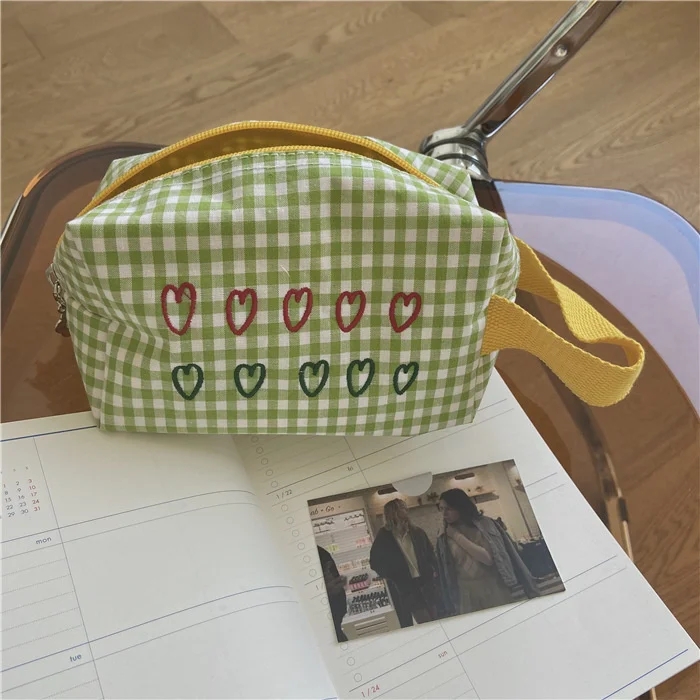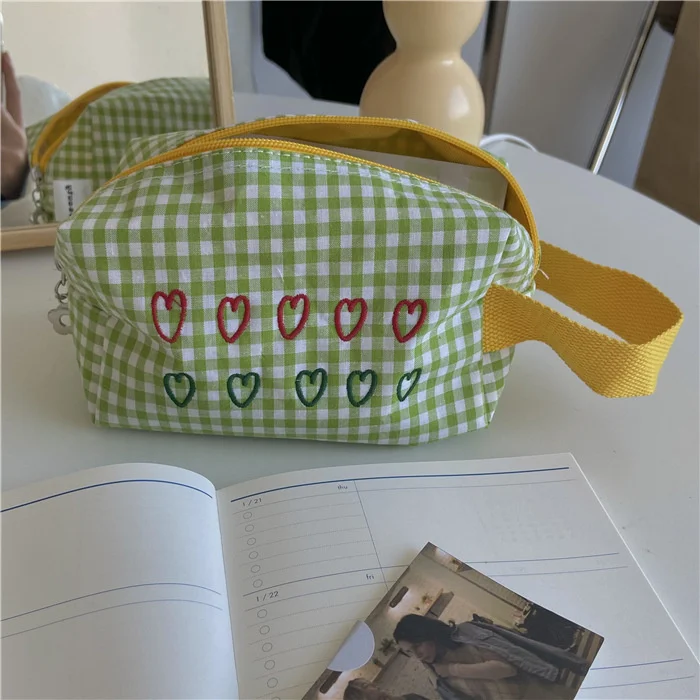 Корейская зеленая сетчатая милая сумка-карандаш с надписью «love»