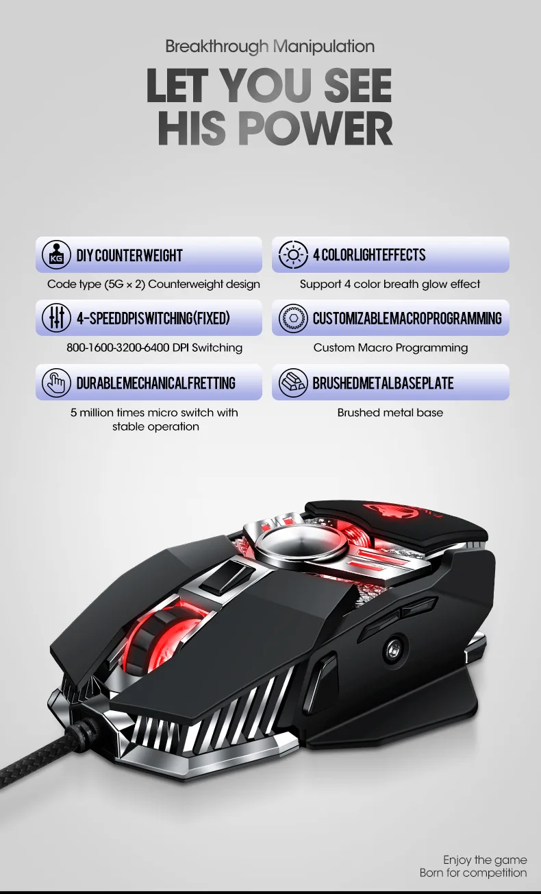 Rgb-мышь: одна кнопка для регулировки 4 RGB цветовой эффект игровой мыши, создает прохладную и красочную атмосферу игры, чтобы улучшить волнение игры. Лучше всего подходит для ПК-игр.