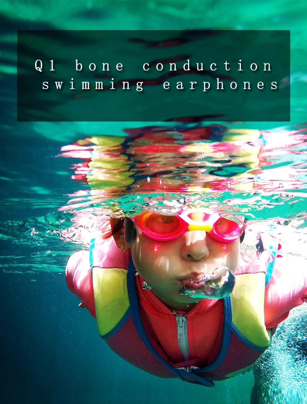 Наушники для плавания с костной проводимостью Q1-это сертифицированная гарнитура IPX8, которая может плавать в 5 метрах под водой.