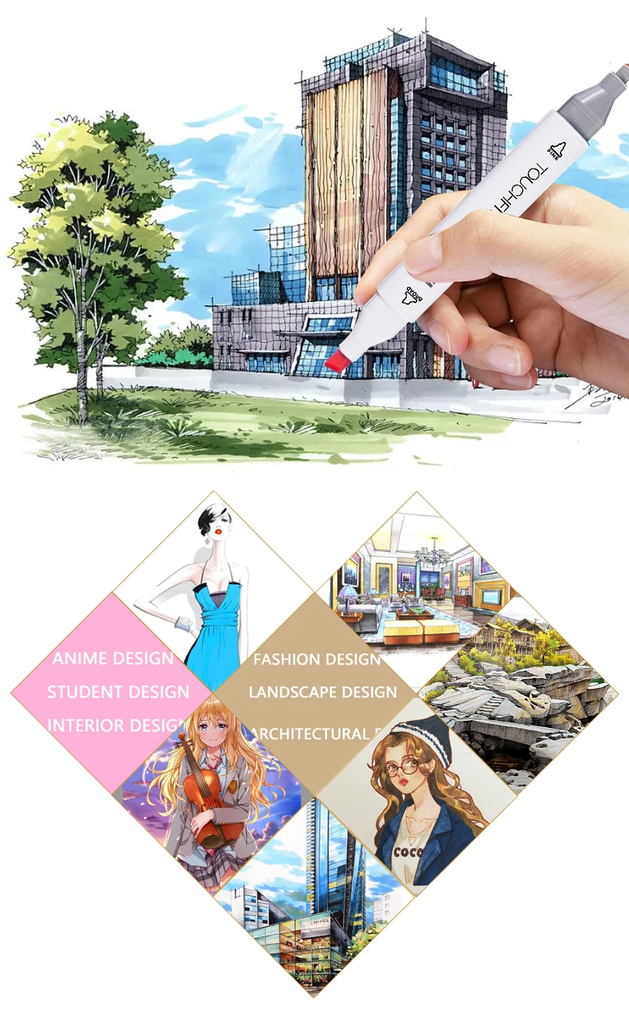TOUCHFIVE классные цвета художественный маркер двойная головка на спиртовой основе Кисть ручка набросок рисунок анимация ландшафтный дизайн зданий