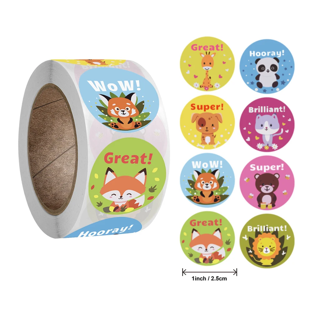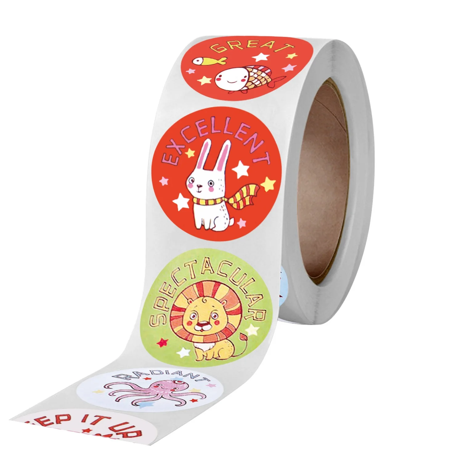 Милые Мультяшные наклейки с животными. Бумажные наклейки диаметром 1 дюйм, милые наклейки, наклейки для журналов. Отличные подарки для детей: Эти наградные наклейки с множеством поощряющих слов с милыми животными. Дети будут привлекаться этими милыми животными и мотивированными словами.