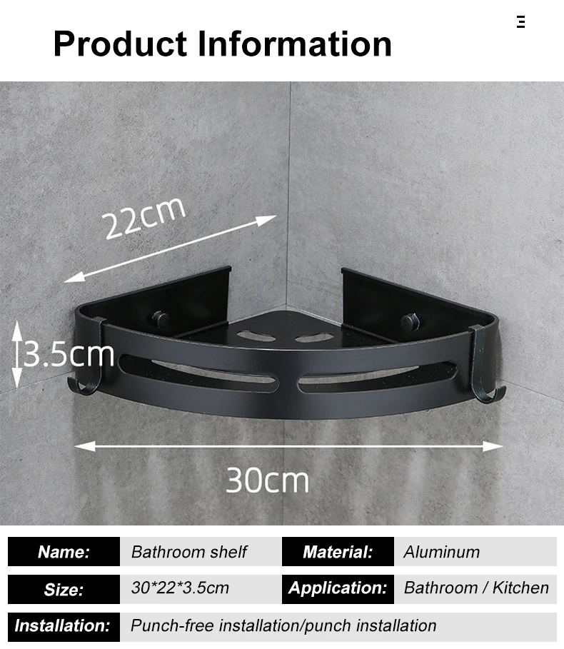 Полка изготовлена из высококачественного алюминиевого сплава сСильная несущая способность. ПоверхностьУстойчив к коррозии и ржавчине. Подходит для влажной среды, такой как ванные комнаты (даже в душе) и кухни.
