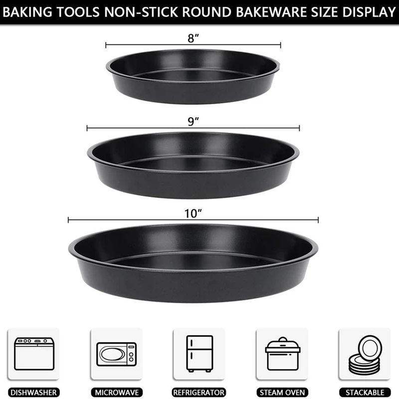 [3 шт. сковорода для пиццы] Высокое качество 3 шт., черная посуда для выпечки с 8/9/10 дюймовым размером, которая может удовлетворить ваши потребности в изготовлении пиццы разных размеров, И очень подходит для домашних печей или печей для пиццы, готовящих домашнюю пиццу.