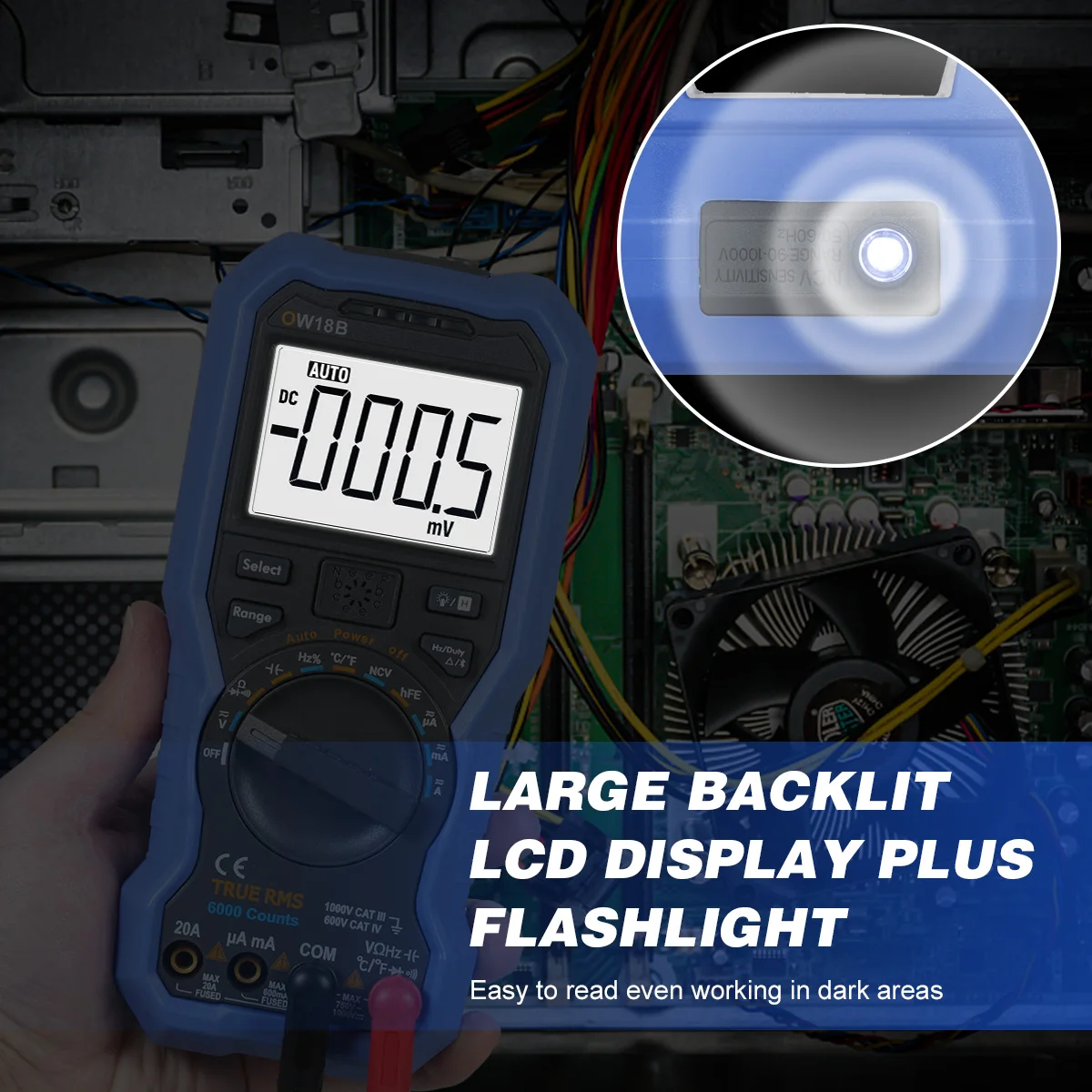 Мультиметр True RMS-Возможность Тестирования постоянного/переменного напряжения, переменного/постоянного тока, сопротивления, емкости, частоты, NCV, диодов и температуры (℃/℉).