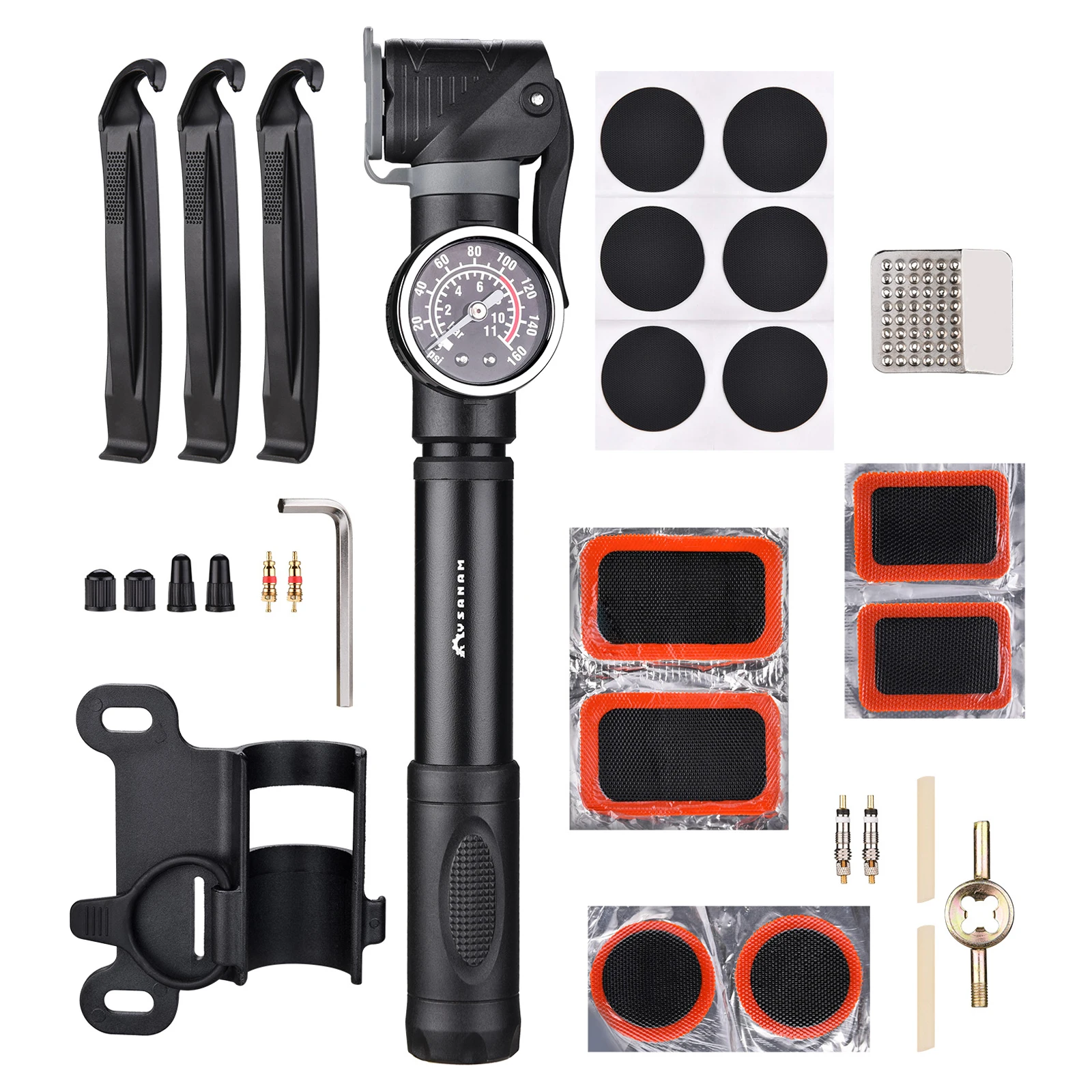 Поставляется с набором инструментов для ремонта шин (пружины, пружины, патчи для шин, файл, шестигранный ключ, гаечный ключ для газовых клапанов и т. д.), может помочь решить большинство проблем с велосипедом.
