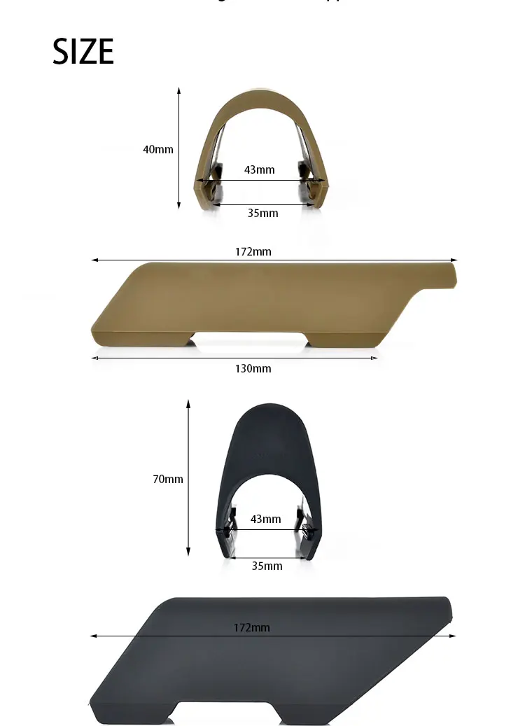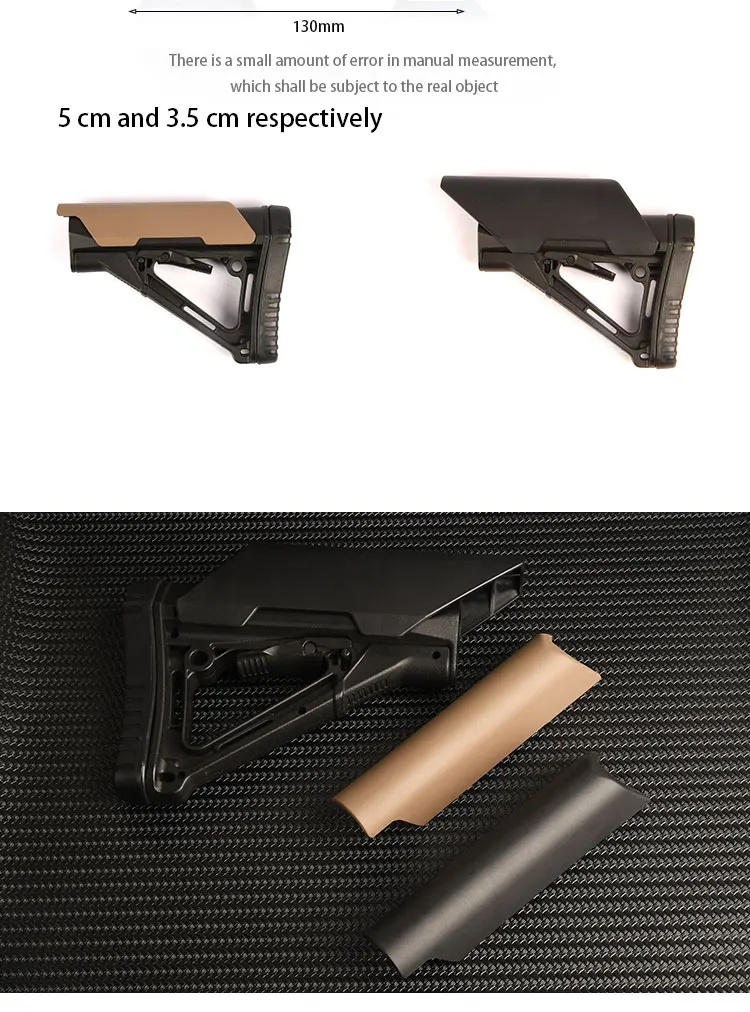 Brand:WADSN Model Number:MP05001,MP05002 Product Name: Cheek Riser Color:BK,DE Material:Nylon plastic Version:MP05001 low Cheek Riser,MP05002 High Cheek Riser. Feature: 1.The stock is made of high quality nylon material,it will let us feel comfortable when we use the airsoft gun.This means that no matter how long we battle outdoor, it will Help us reduce physical exertion. 2.This stock can according to our sight height adjustment, convenient and flexible choice.That is say we can use it for different scope's height and type.