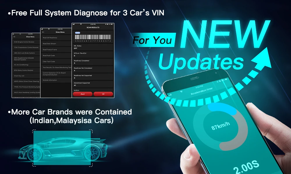 Благодаря превосходным диагностикам всех систем этот многоцелевой сканер obd2 может использоваться для считывания всей доступной информации системы ECU для облегчения диагностики автомобиля. Полные системы отличаются от различных автомобилей, и они обычно включают двигатель, трансмиссию, ABS, SRS, SAS, TPMS, EPB и системы шасси/кузова/электрооборудования и т. Д.