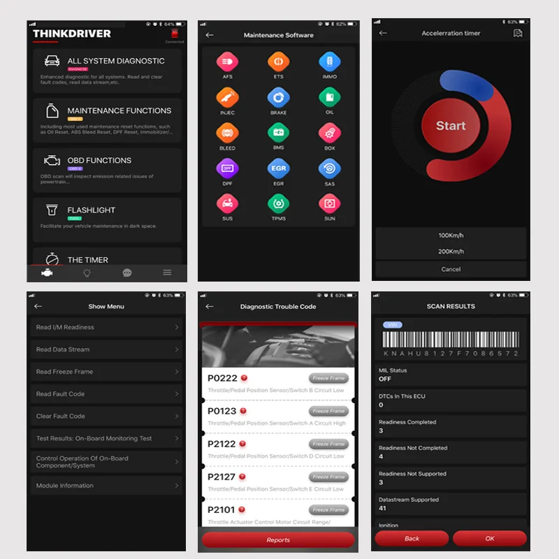 Функция диагностики всех систем THINKDRIVER Car: