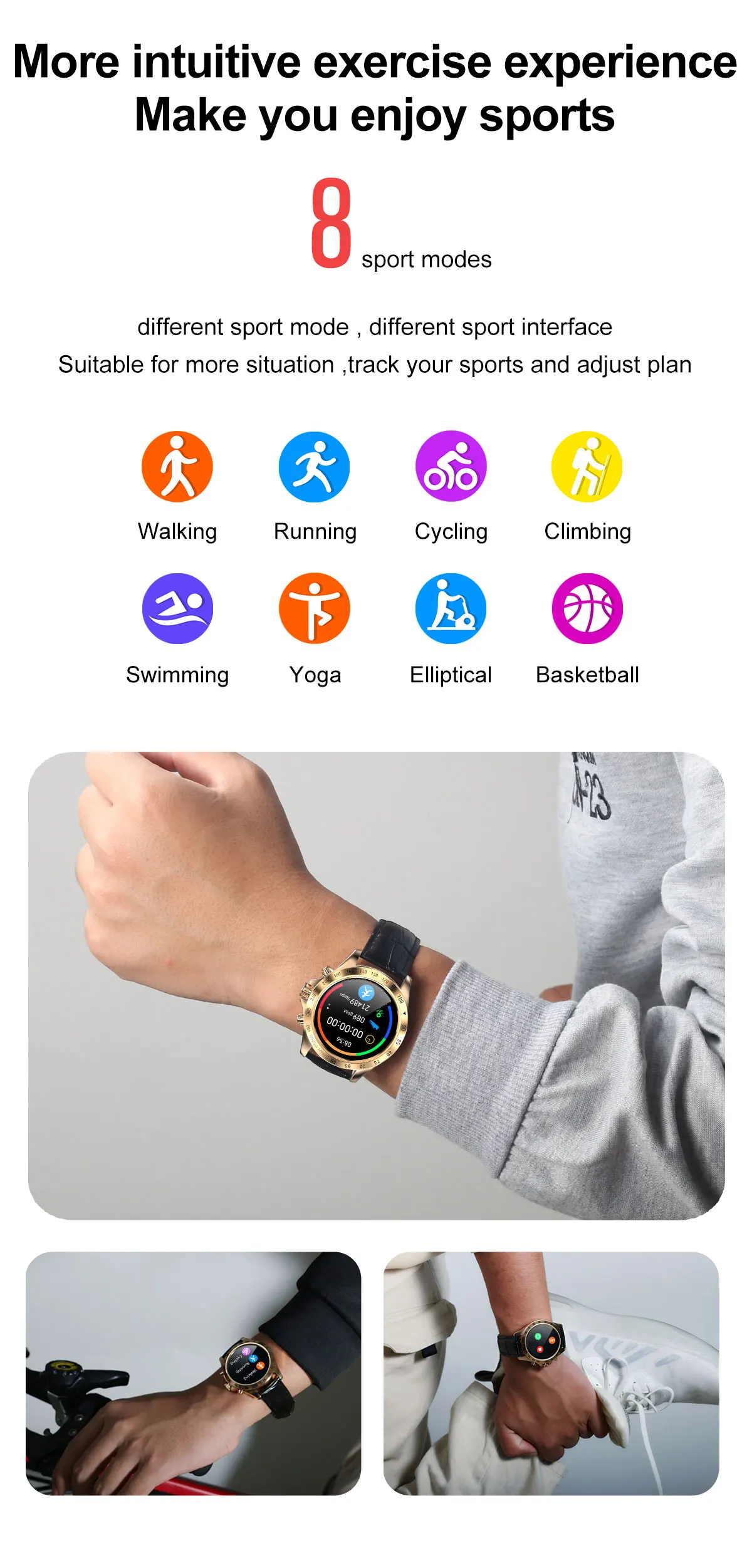 Прогулки, бег, Пешие прогулки, езда на велосипеде, плавание, баскетбол, эллиптический тренажер, йога
