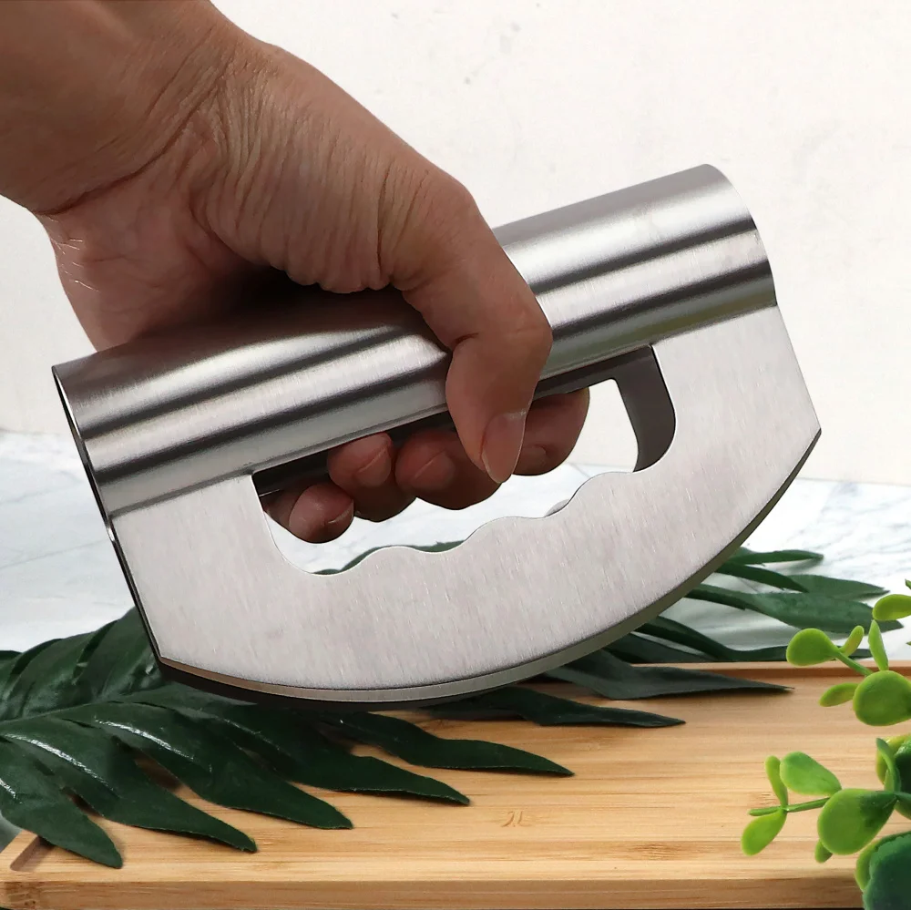 1.ПремиумМезалуна резак для травНержавеющая сталь коммерческого качества с отличной износостойкостью, с использованием небьющегося пластика ABS в качестве ручки, экологически безопасна для здоровья