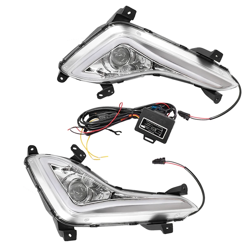 2pcs LED DRL Daytime Running Lights Fog Lights For Hyundai Elantra 2014 2015 2016 Car Front Bumper Fog lamps With Turn Singal
