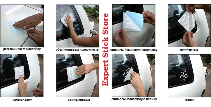 После нанесения, не спеша снять монтажную пленку, смотря чтобы все части наклейки остались на поверхности.