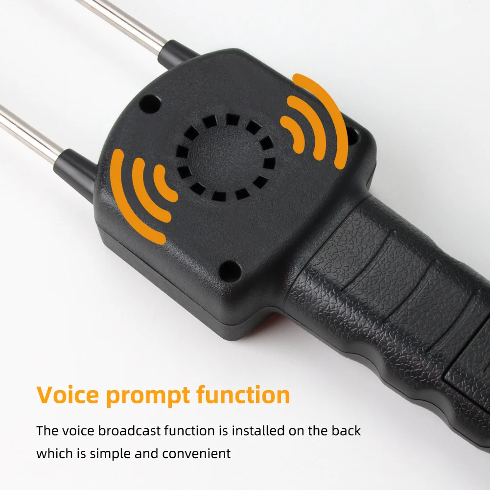 Name: AR991 Grain moisture meter Item weight:260g Item size:415 * 70 * 33mm Sensor type: Double probe Voice over: support Memory function: support Measuring range: 7.5%-50%(Moisture) Moisture measurement resolution: 0.1% Deviation adjustment: -3% to +5% Power: 4 * 1.5V AA Batteries (not included) Probe Length: 220mm