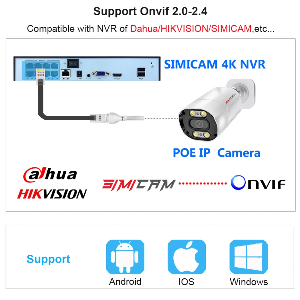 Совместимость с Dahua/Hikvision/Hiseeu ip-камеры с питанием по POE, которая соответствует onvif