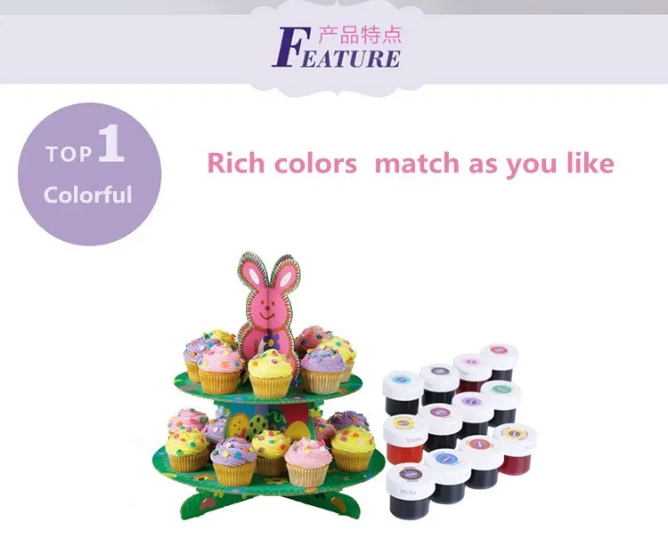 DescriptionБренд: вильтон Упаковка: 12 видов цветов/коробка Вес нетто: 170 г/кор. Срок годности: 36 месяцев Способ хранения: хранение при комнатной температуре Состав: кукурузный сироп, сахар, глицерин, вода, модифицированный крахмал, агар, лимонная кислота, Сорбан калия, натрия цитрат Диапазон применения: используется для декоративной окраски тортов, печенья, мягких сладостей и т. Д. Способ применения: Используйте зубочистку, чтобы смешать небольшое количество ингредиентов и размешать.