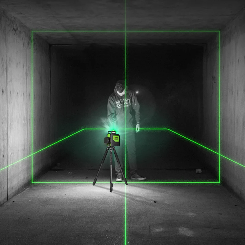 6. Лазерные окна: лазерный уровень имеет три лазерных окна, каждое окно может запускать 4 лазерных линии, всего 12 лазерных линий (4 лазерных линии объединяются в плоскость). Внимание: есть по крайней мере 4 лазерных линии, они не могут держать 1 или 2 лазерных линии.